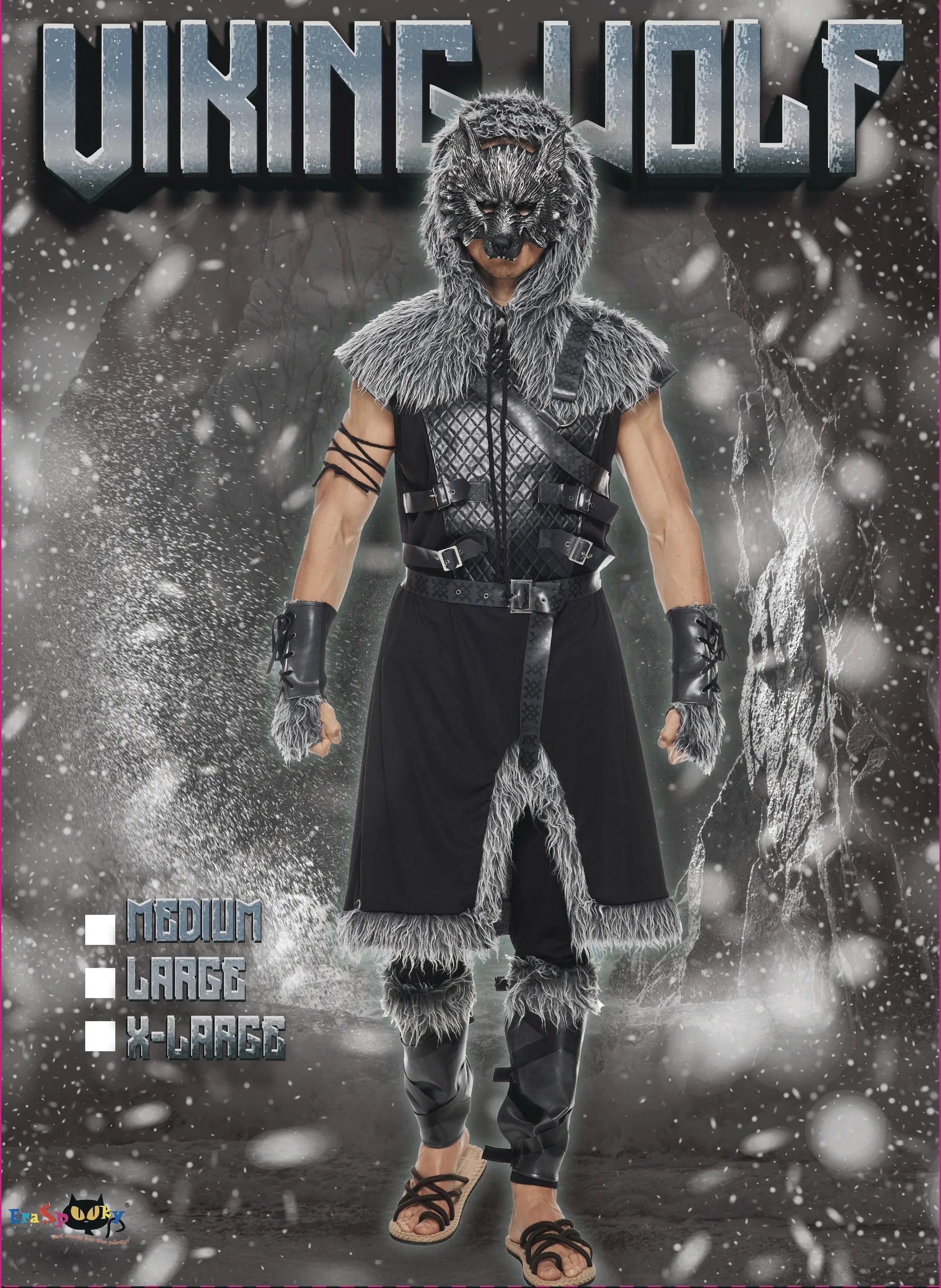 Eraspooky Men Viking Wolf Costume Medieval Werewolf Warrior Cosplay Adult Halloween Costumes Fur Leather Jumpsuit Full Set