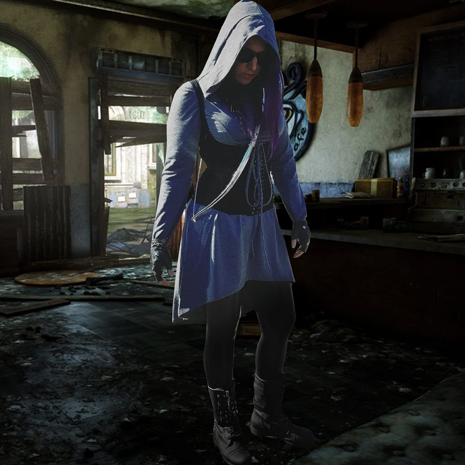 Gemijack Womens Renaissance Costumes Hooded Robe Lace Up Vintage Pullover High Low Long Hoodie Dress Cloak