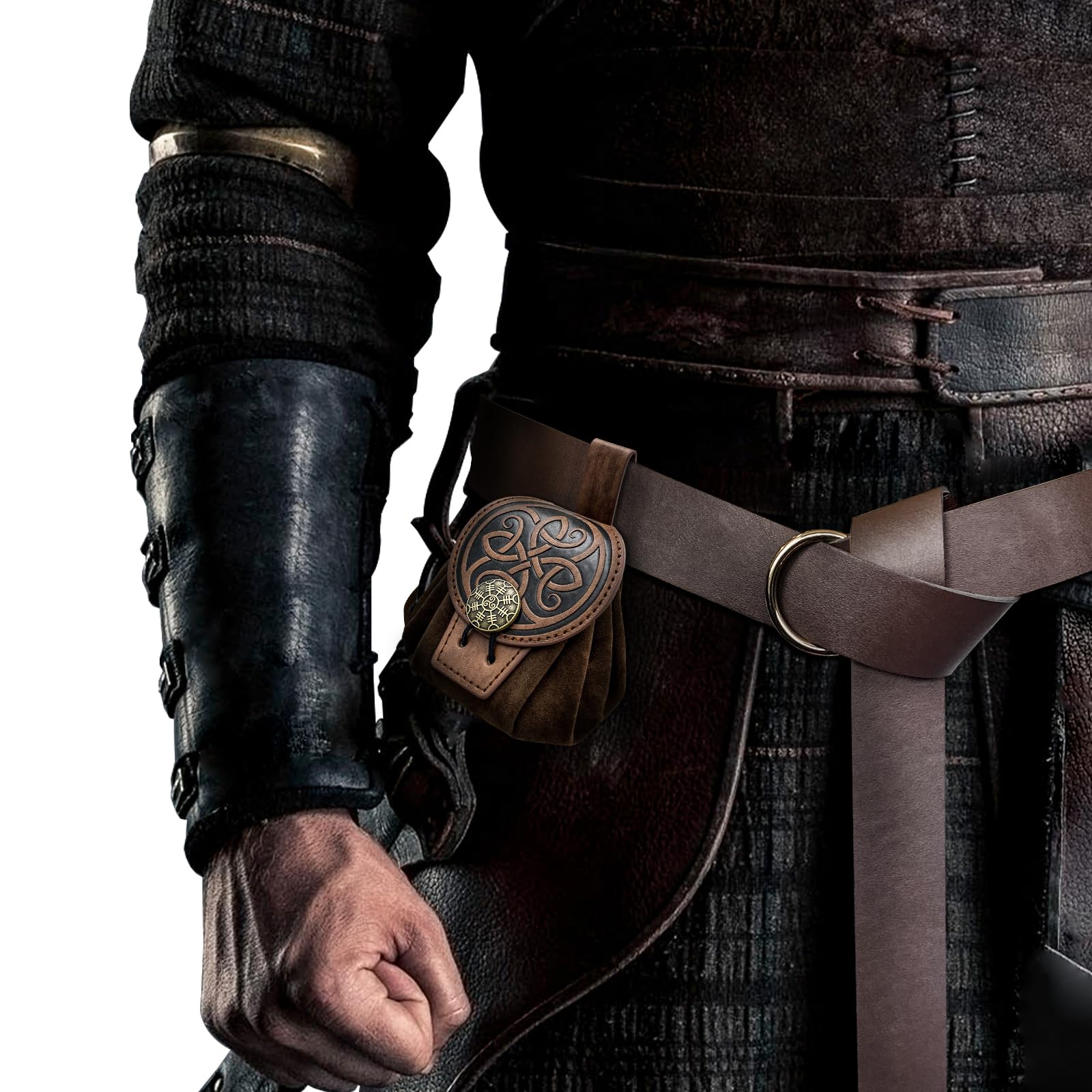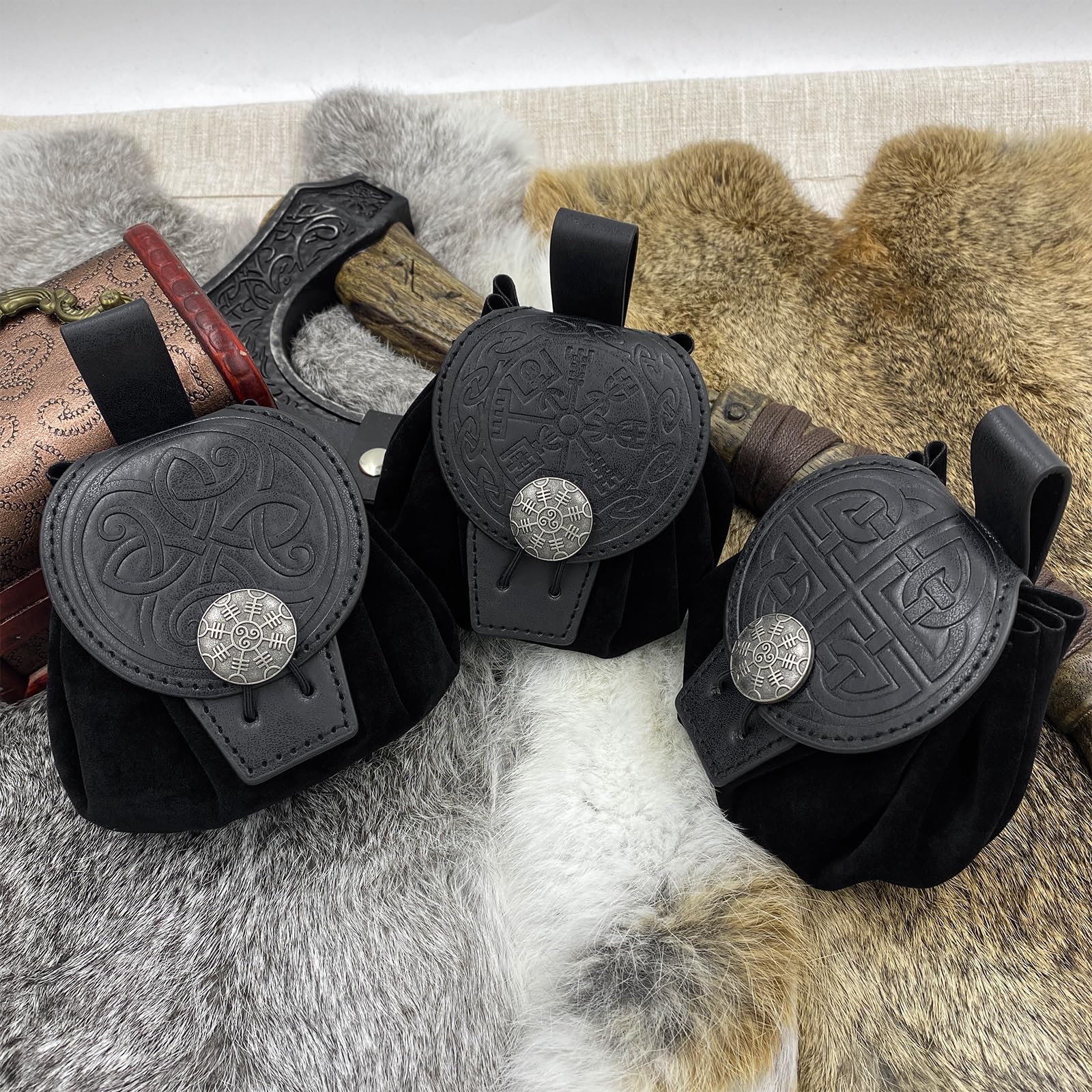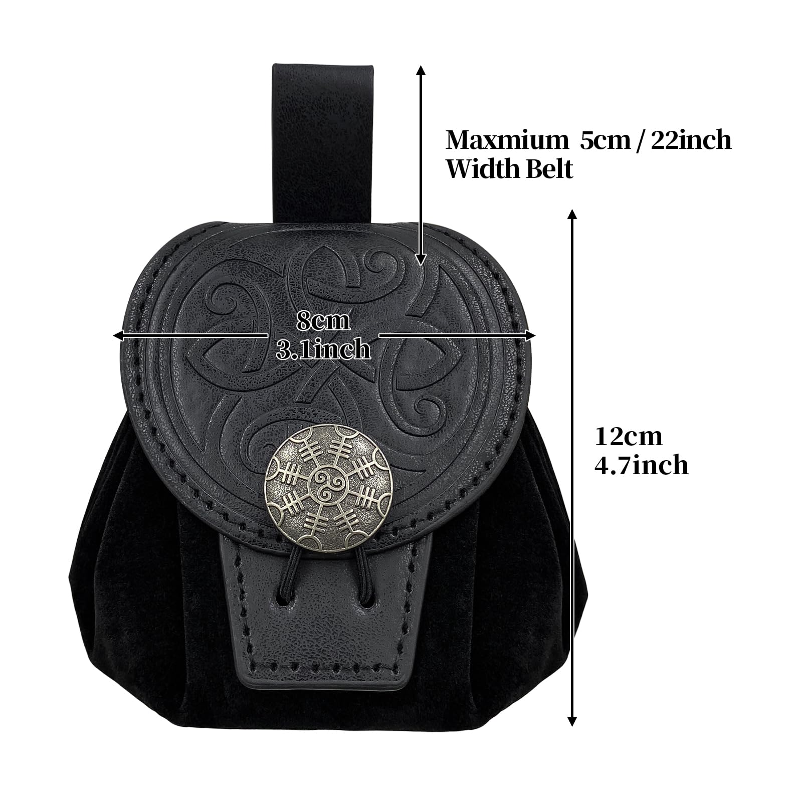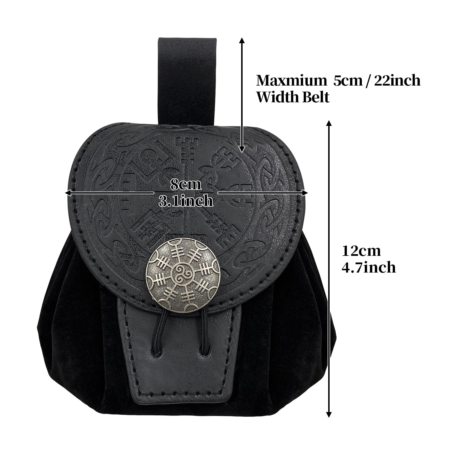 - SUPER COOL DESIGN- Medieval PU Leather Pouch, Portable waist packs with cool embossed patterns crafted with attention to detail, transporting you back to a time that speaks of valour and legend. You can use it as a coin bag,dice bag and wallet.