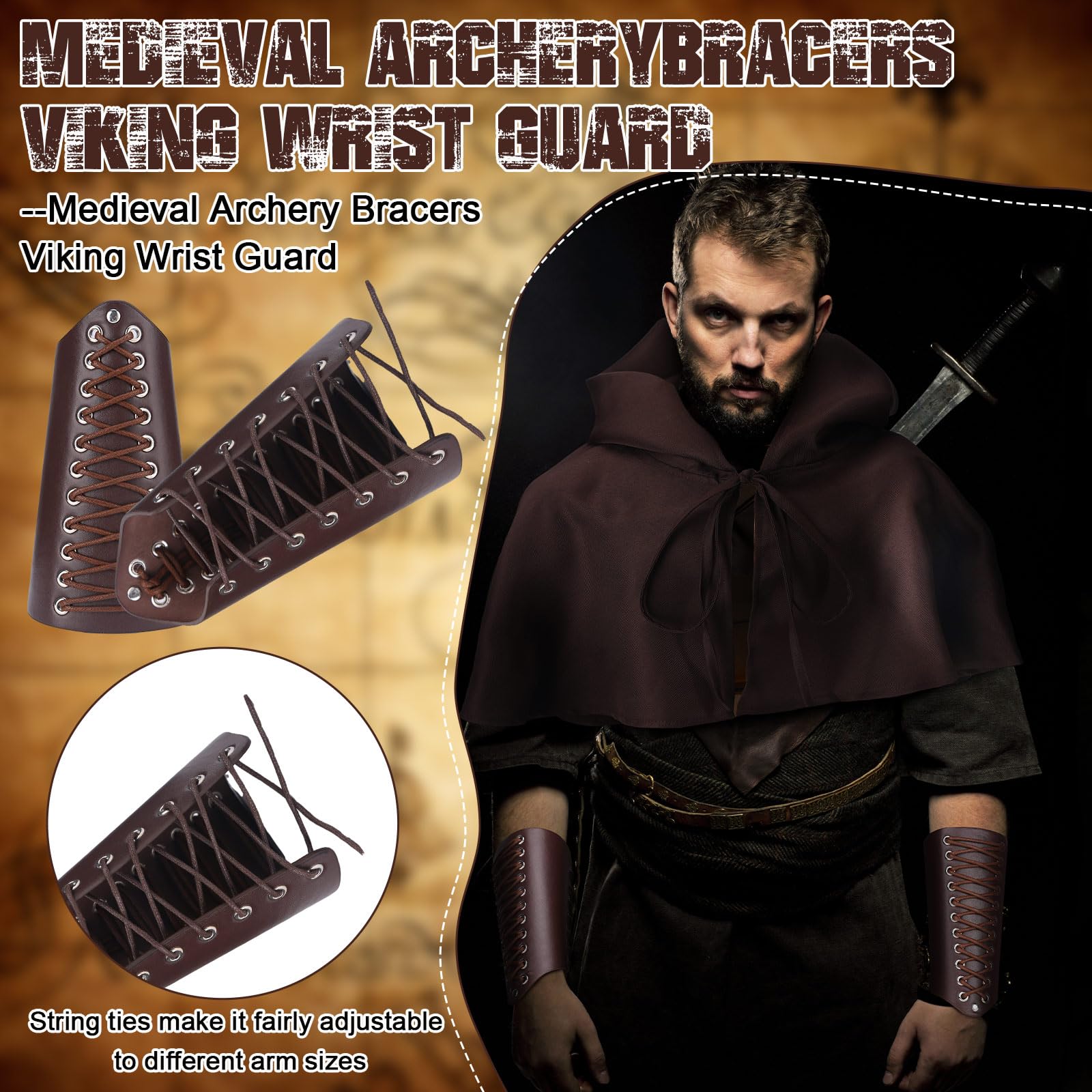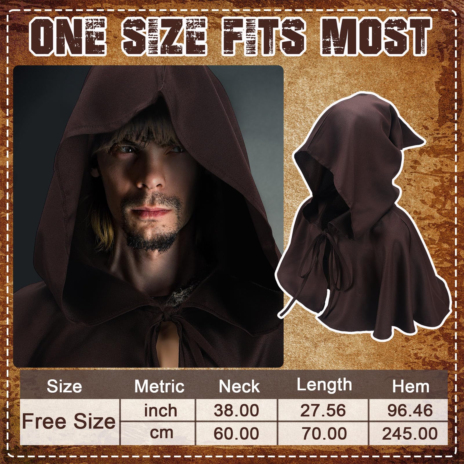 - [Value Mens Renaissance Costume Set]: Our mens renaissance costume offers everything you need in one convenient package, including 1 medieval cloak with hood, 1 renaissance belt, 1 medieval leather belt pouch, and 1 leather bracers; With these renaissance accessories, you can effortlessly transform into a renaissance character of your choice.