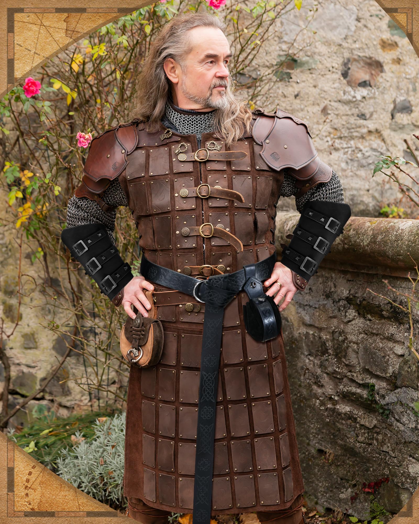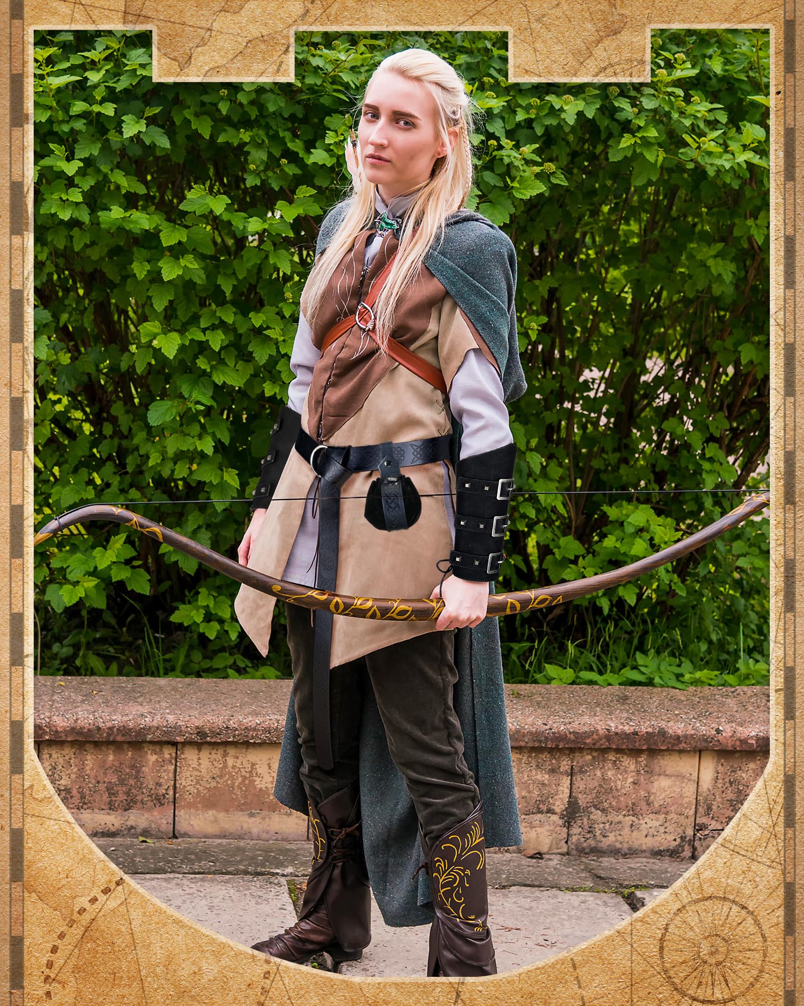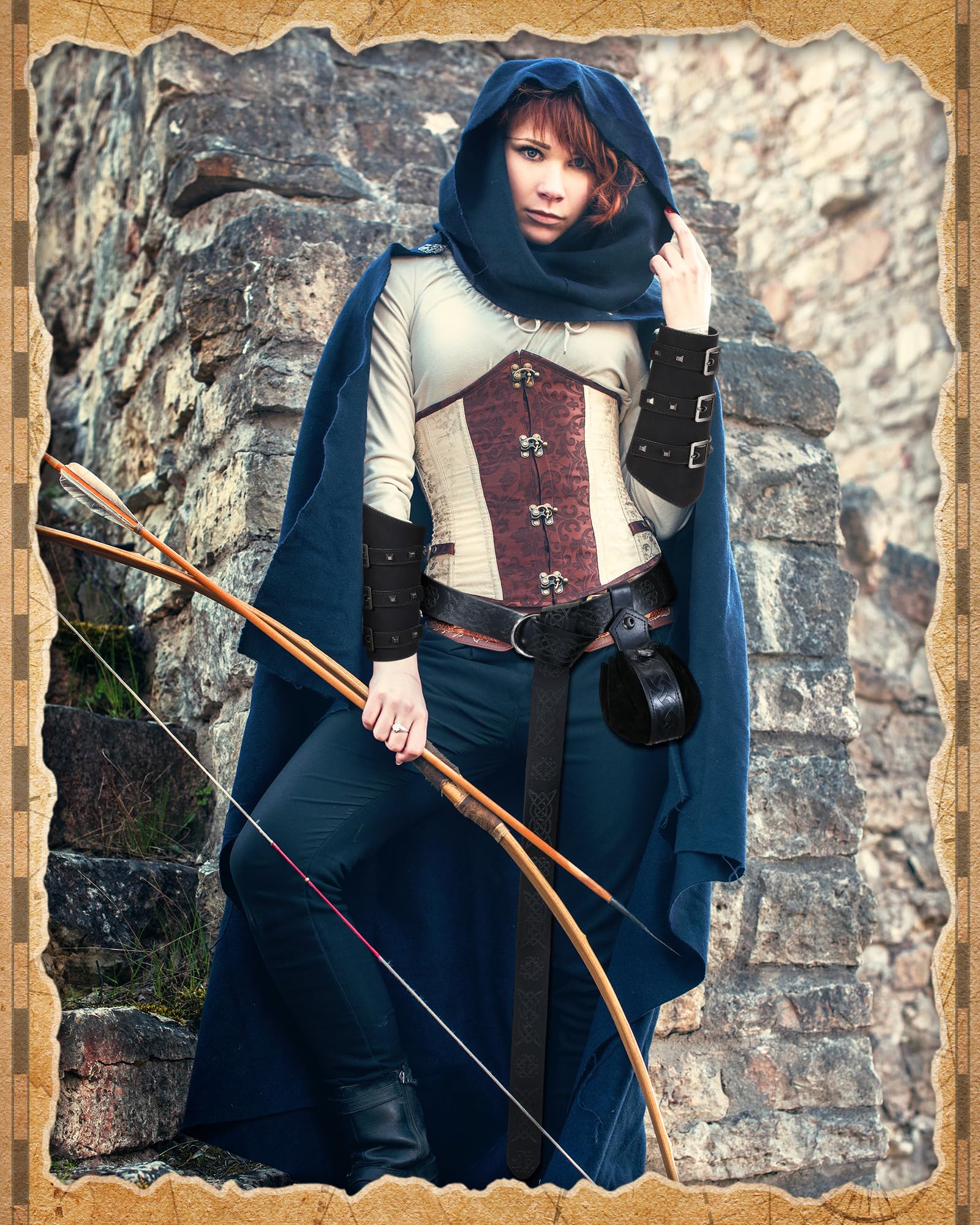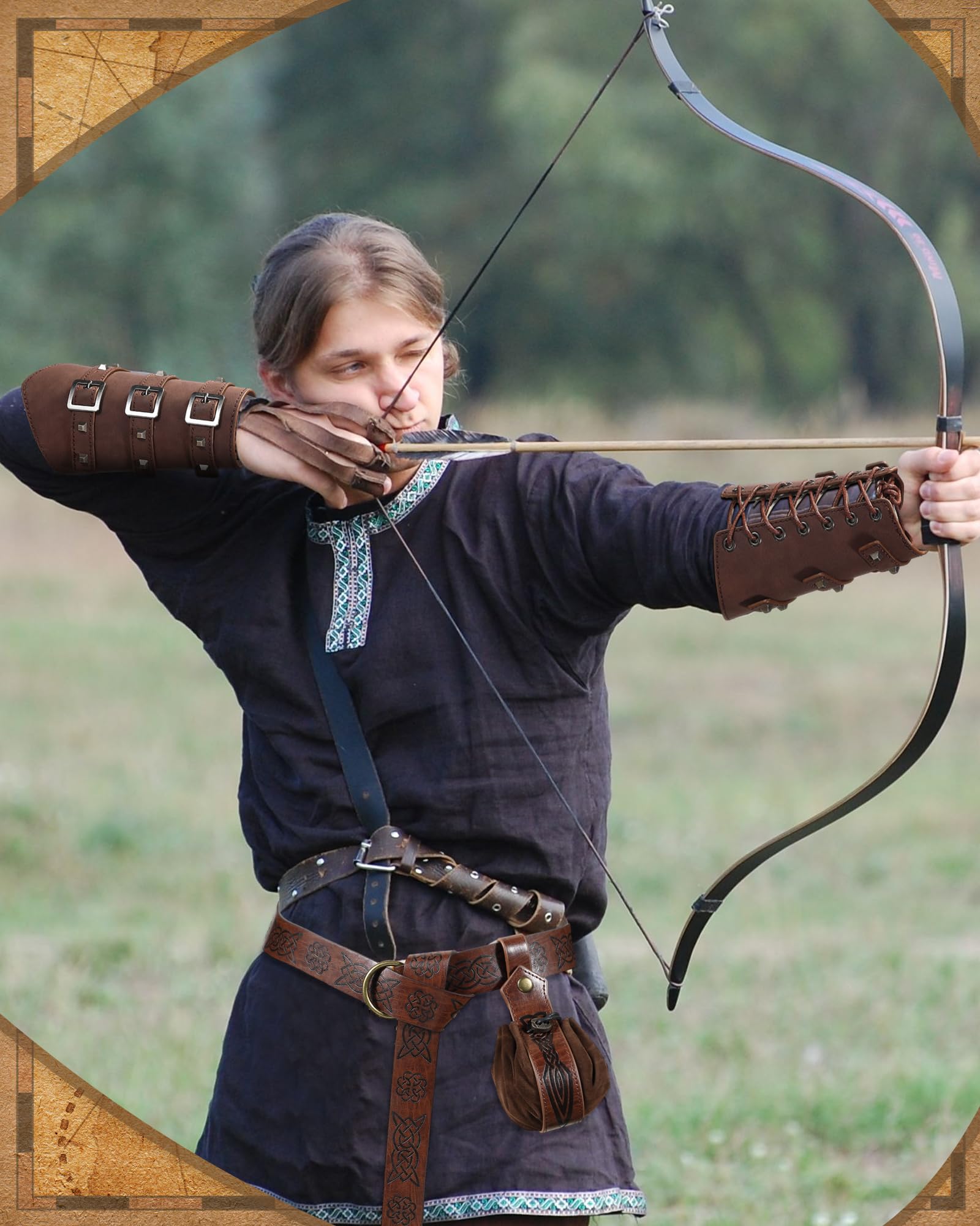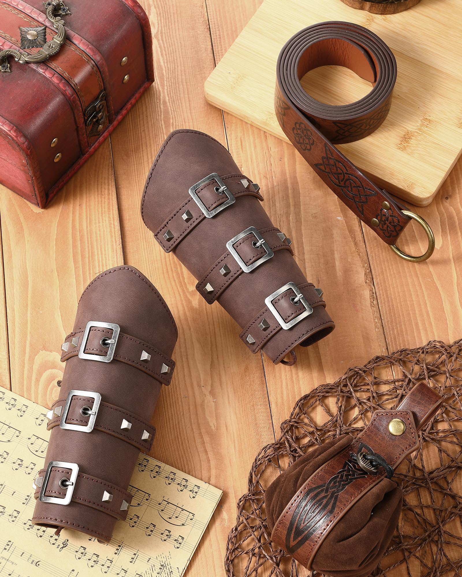 LEIFIDE Medieval Viking Belt Leather Belt Pouch Faux Leather Arm Guards Renaissance Accessories Viking Costume Leather Bracers Medieval Bag Knight Belt for Halloween Fair Cosplay