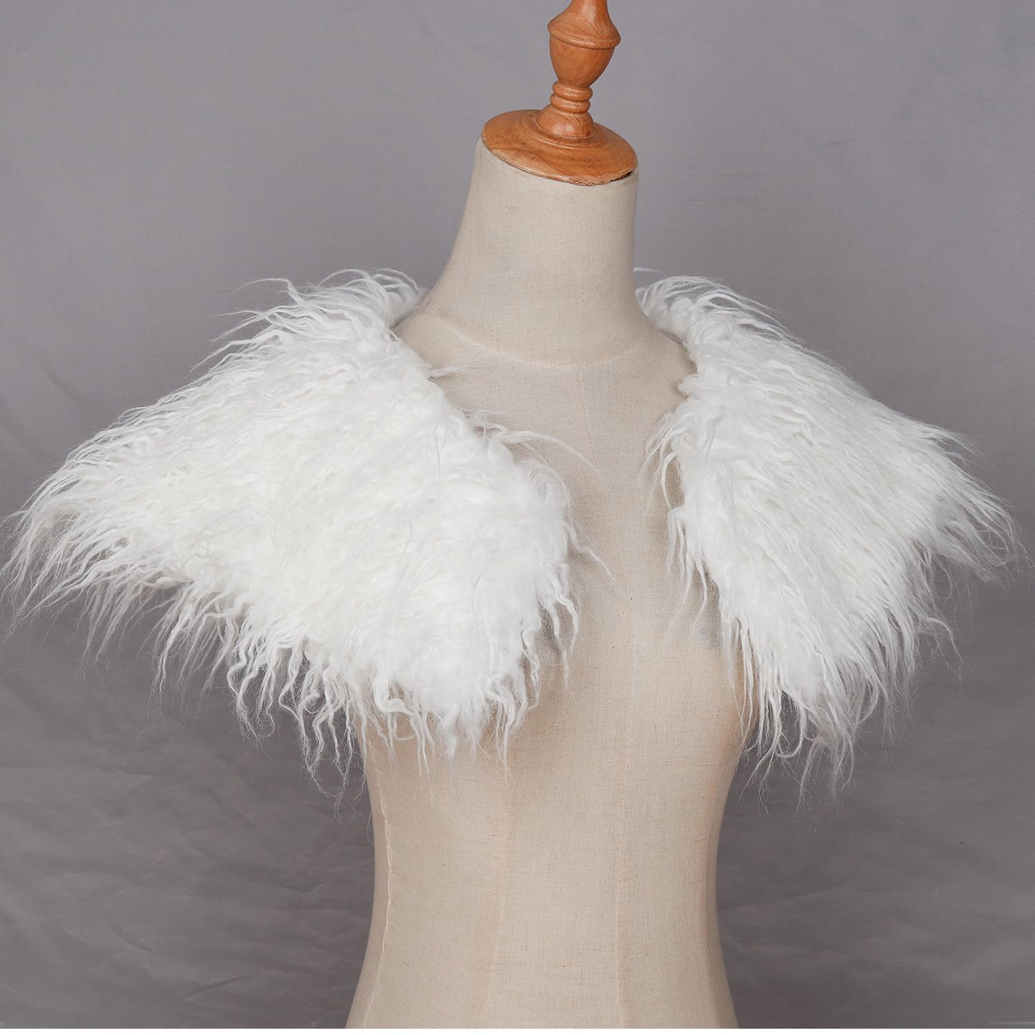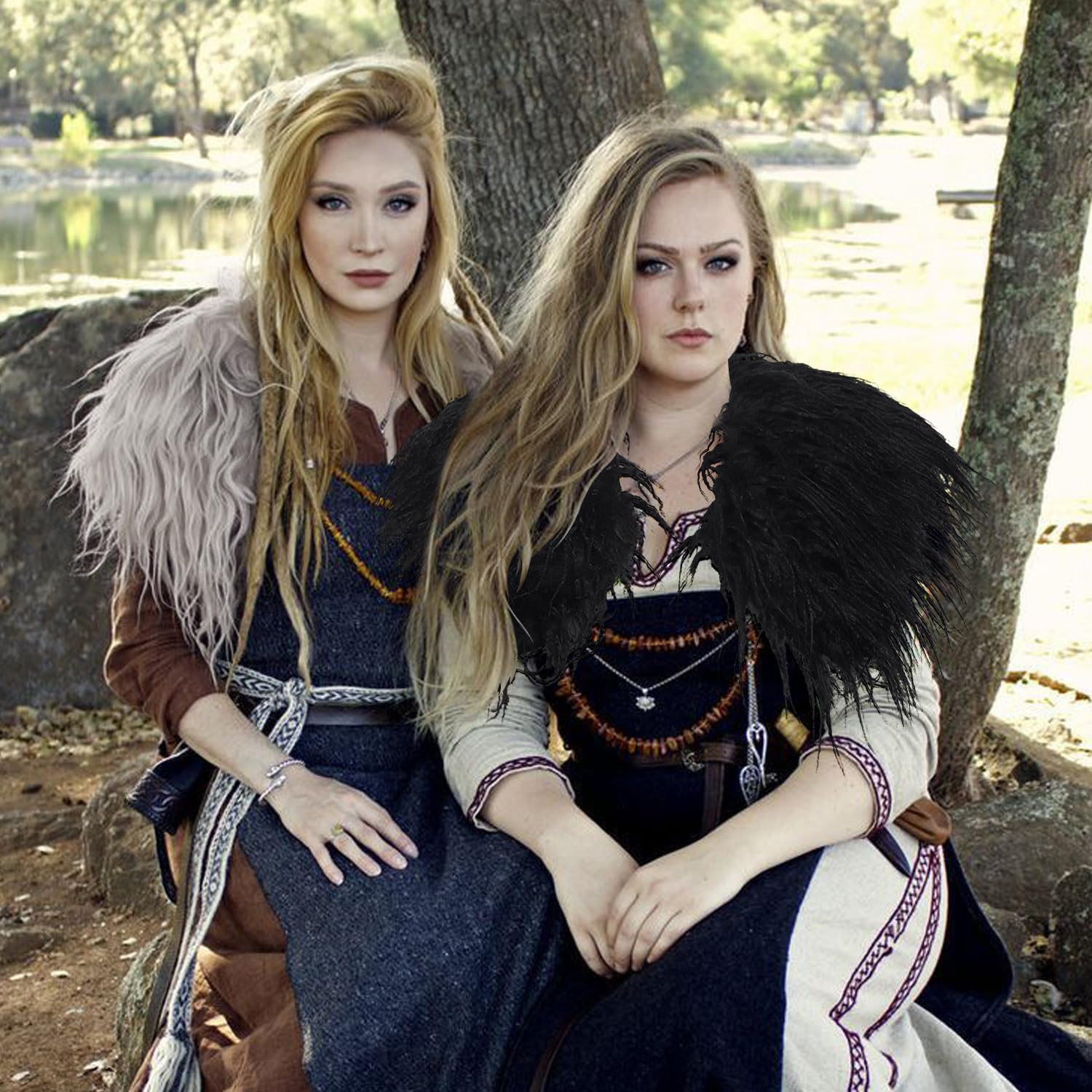 L'VOW Viking Queen Faux Woolen Fur Collar Shoulder Wrap Warrior Cape for Women LARP GoT Party Halloween Costume