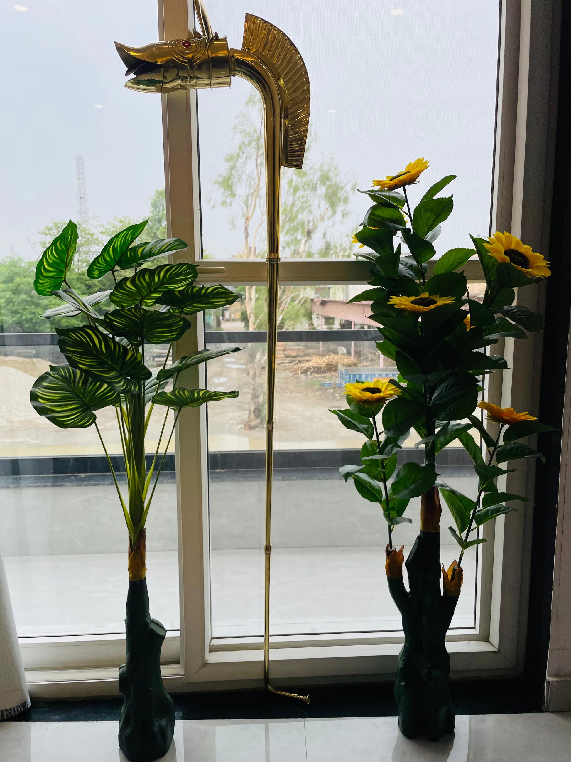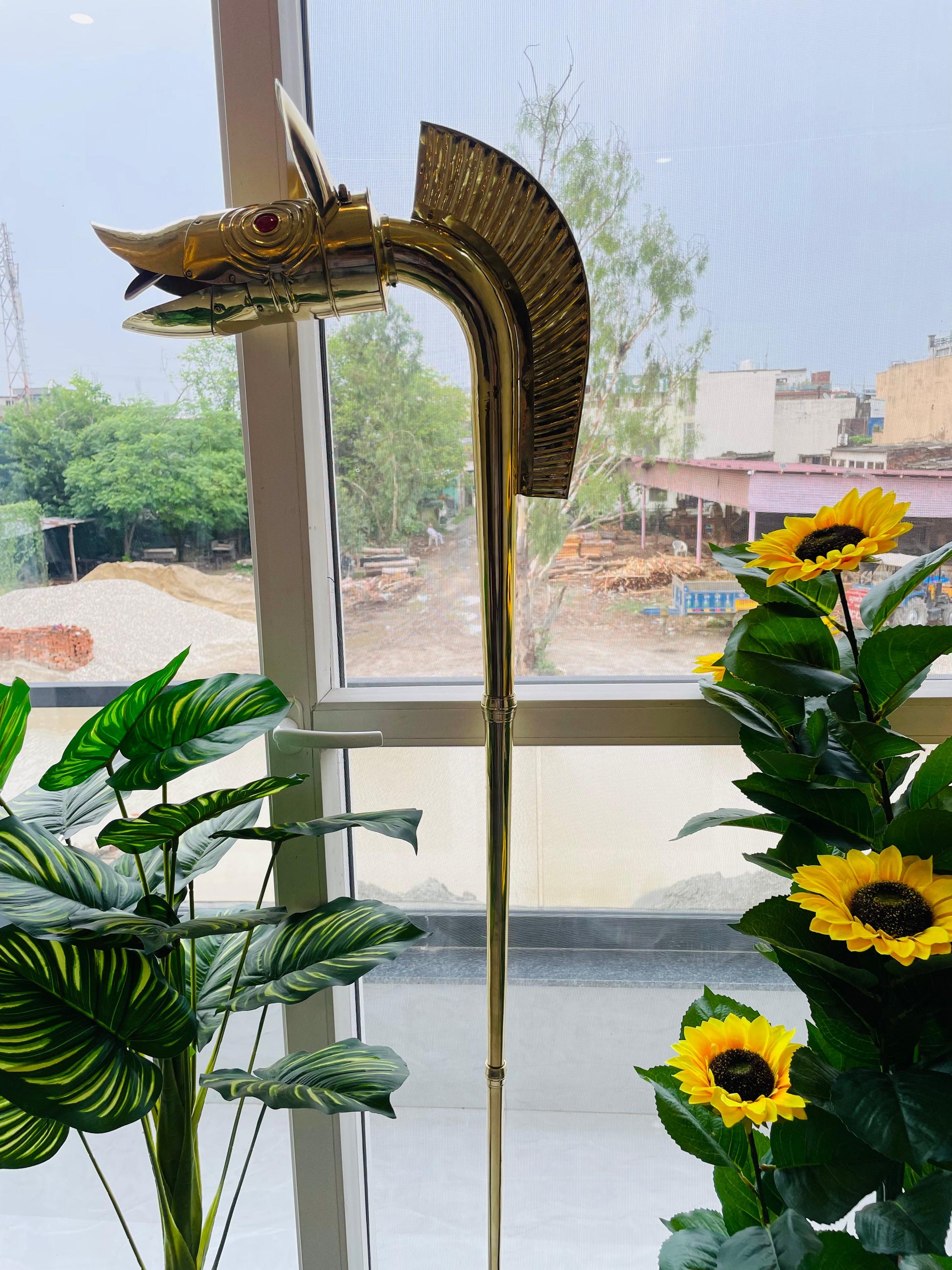 Unleash your inner Celtic warrior with our fully playable carnyx 18 gauge brass Medieval deskford carnyx for sale. Made with authentic period materials, experience the full force of a battle cry with its rich and resonant sound. Perfect for living history enthusiasts and musicians alike. Celtic instrument war horn carnyx for sale