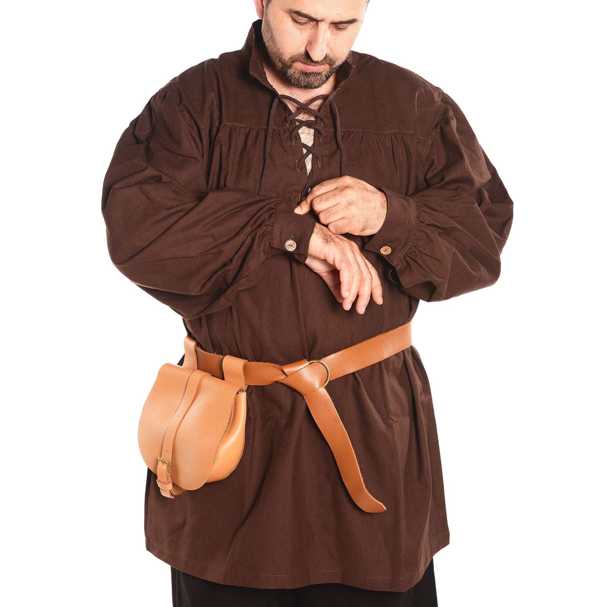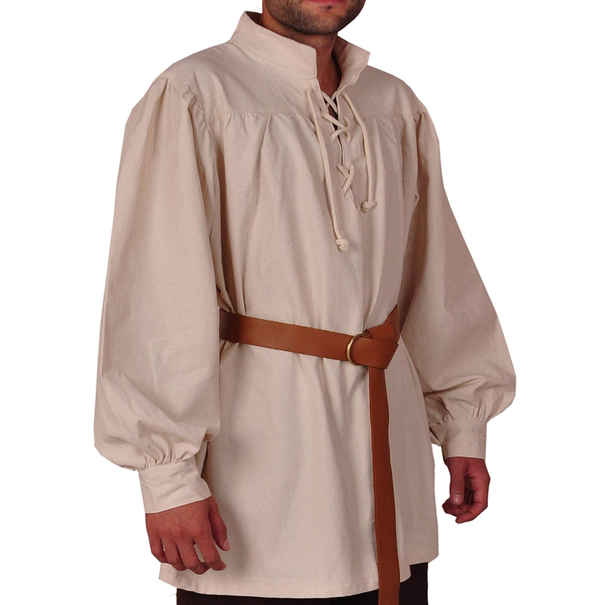 - Our medieval stand-up collar with front cord closing and buttoned cuffs is living an authentic look and optical highlight to be shown in the larp .