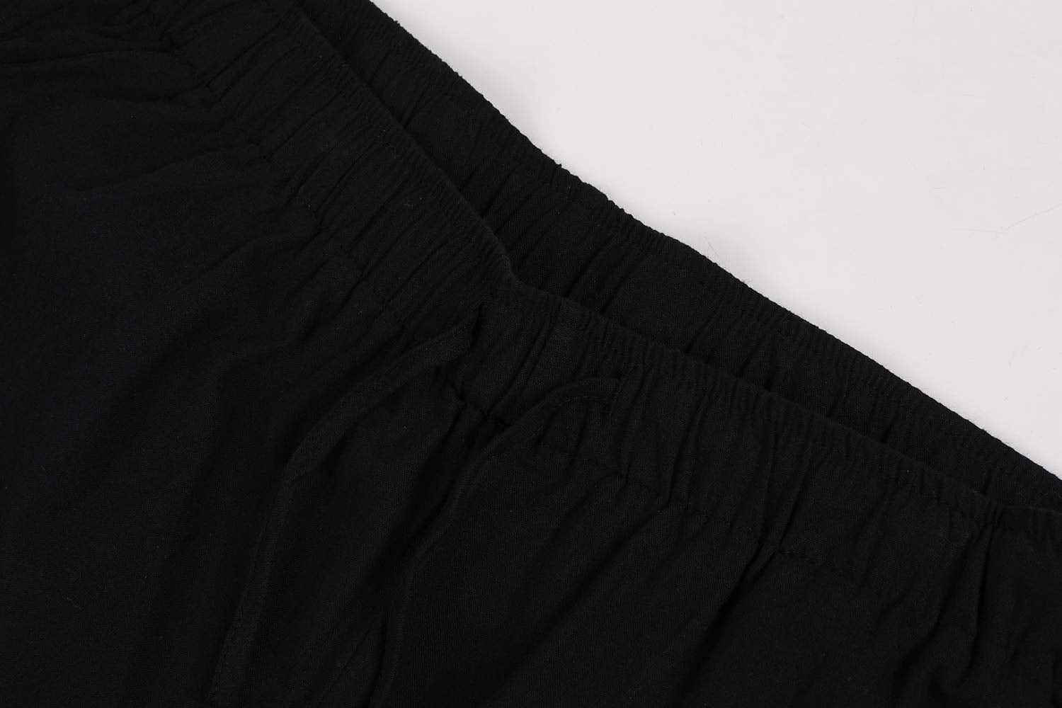 - Features - Pockets on sides, knee length, loose fit, elastic waist, low crotch and very full leg for ease of movement.