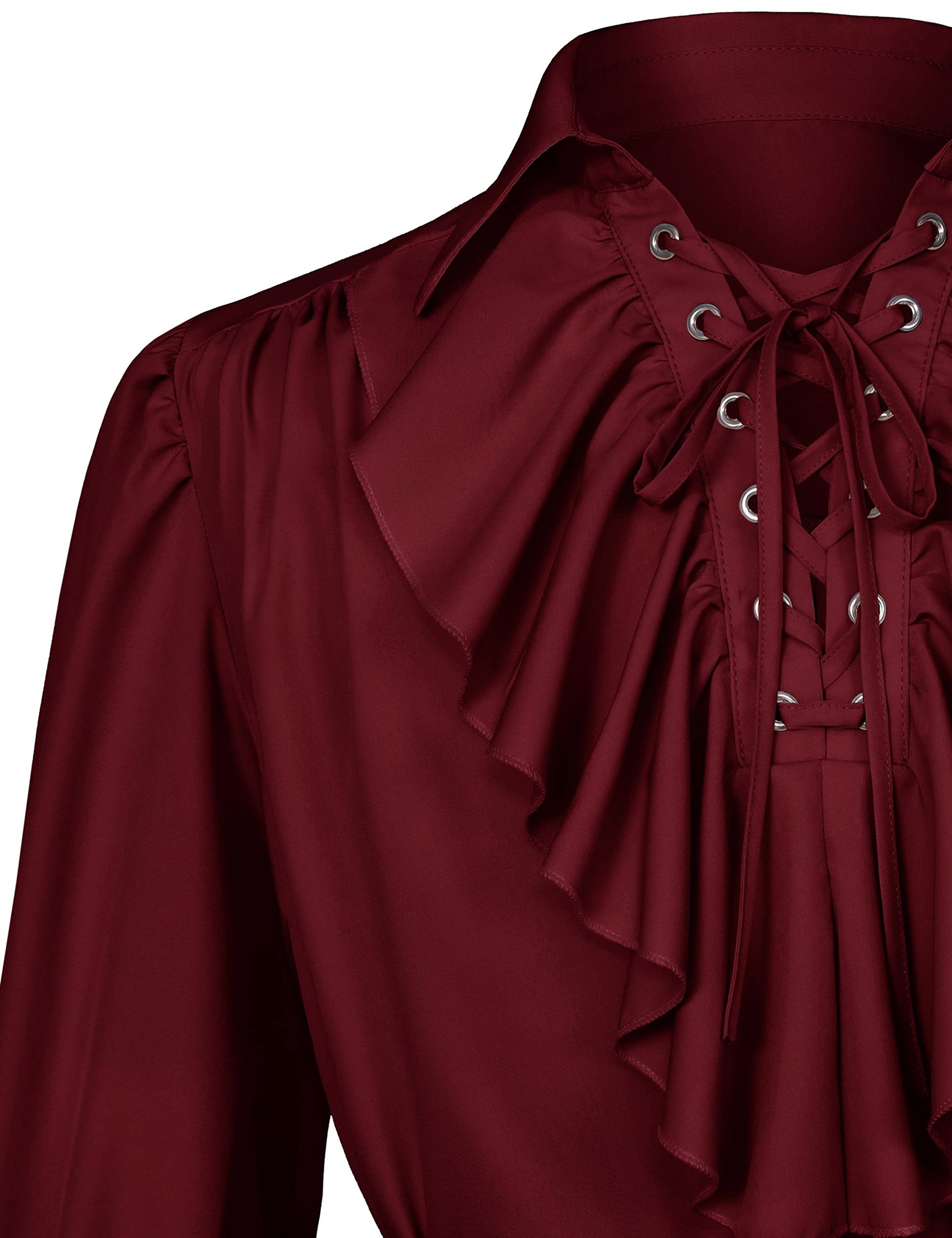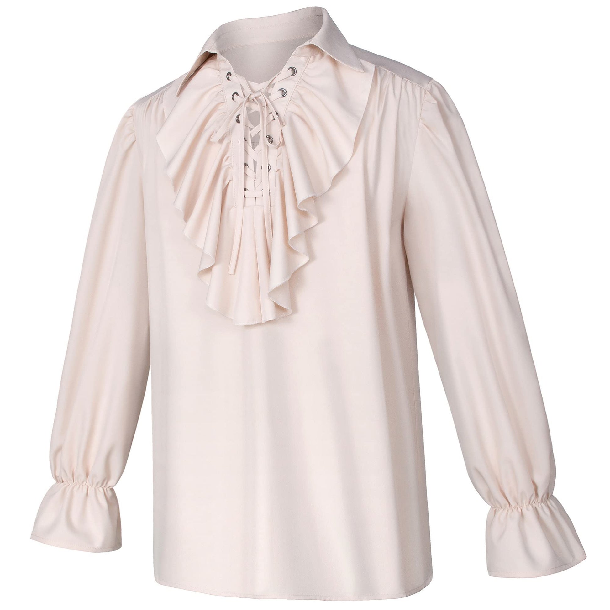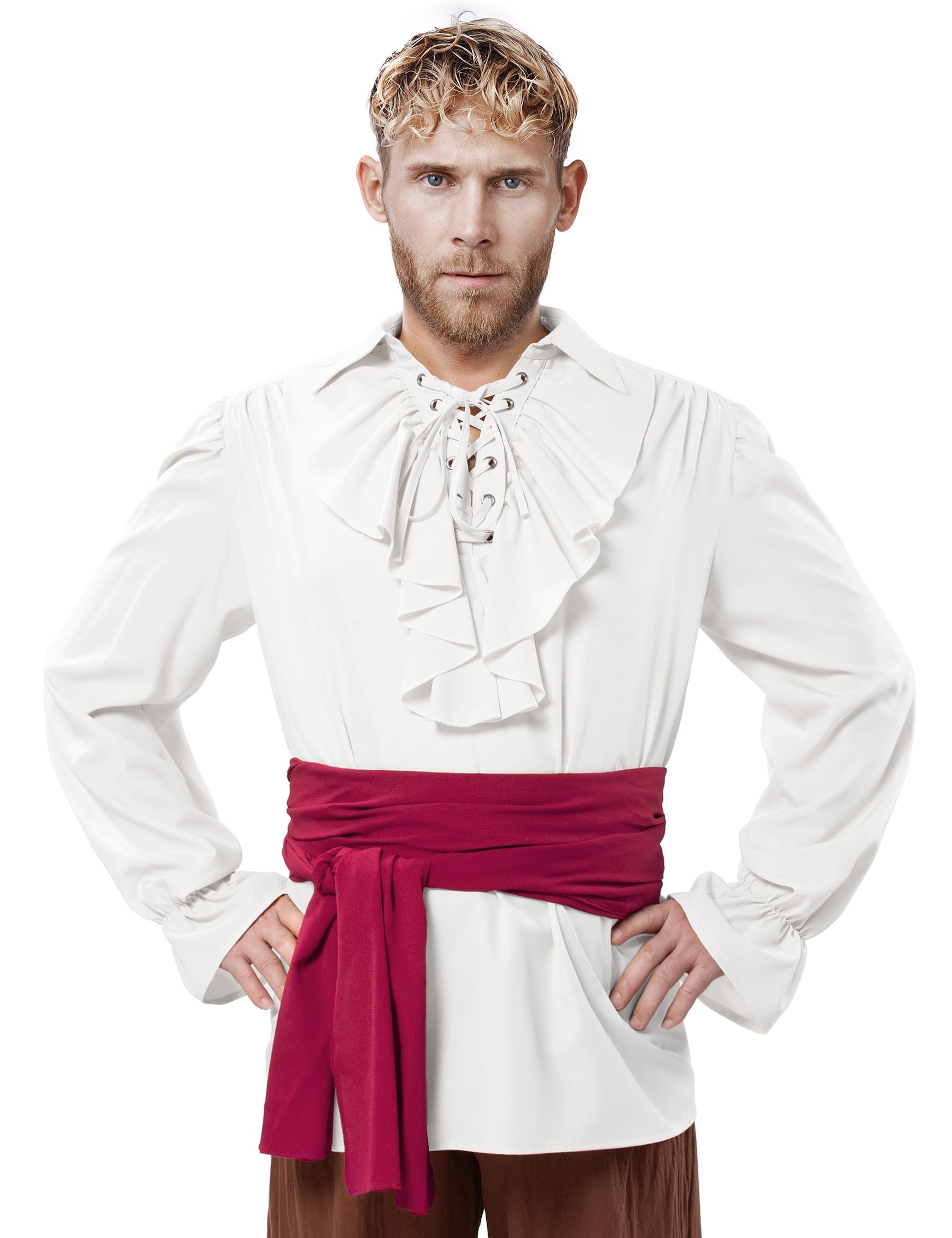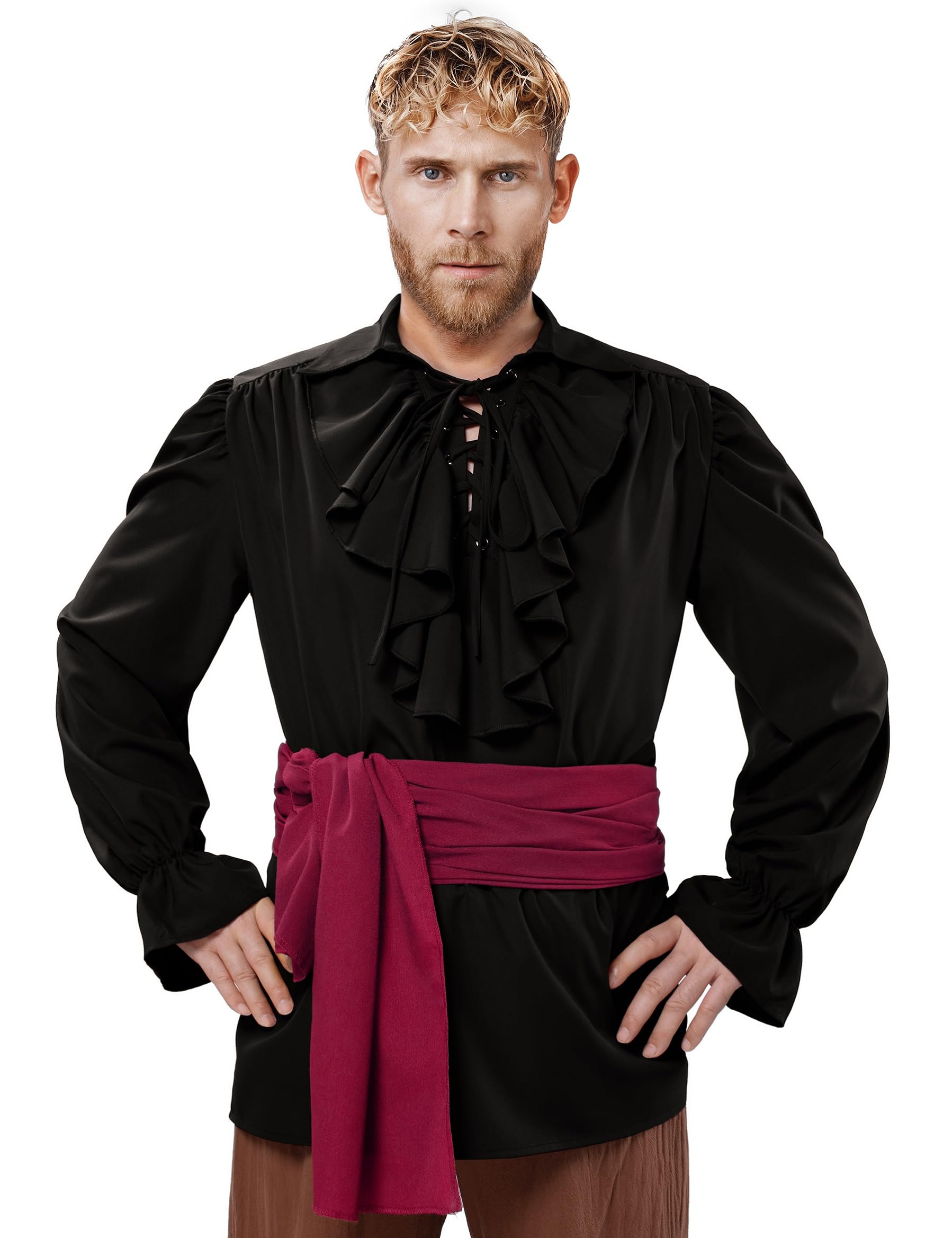 Renaissance men's women's viking pirate lace up colonial shirt medieval victorian vampire steampunk gothic ruffled halloween clothing tops waist belt sash set. Solid color and retro style, cosplay costume shits for men's and women's. Lace-up neckline sleeves with delicate ruffles cuff, Soft and lightweight polyester fabric, keep you cool, dry and moving comfortably. This shirt is suitable for many characters,you can pair this vintage dress shirt with vest and suit jacket for a elegant yet sophisticate look; Or pair the renaissance shirt with steampunk jacket for victorian gothic costume; Pair it with a skinny jeans, and tall boots for a captain hook costume.You won't regret it. Suitable for many occasions, wedding, groom, masquerade, pirate cosplay show, theatrical show, vampire, 18 cent period, Victorian, gothic, for a captain hook costume, medieval, elizabethan, halloween party, colonial day, renaissance fair, concert, festival, graduation season school party, stage peformence, etc. Size Information: Size S:Length 29.9"----Shoulder 16.9"---- Bust 47.2"----Sleeve Length 25.6" Size M:Length 30.7"----Shoulder 17.7"---- Bust 49.6"----Sleeve Length 26.0" Size L:Length 31.5"----Shoulder 18.9"---- Bust 54.3"----Sleeve Length 28.0" Size XL:Length 31.9"----Shoulder 19.7"---- Bust 56.7"----Sleeve Length 29.1" Size 2XL:Length 32.3"----Shoulder 20.5"---- Bust 59.8"----Sleeve Length 30.7"