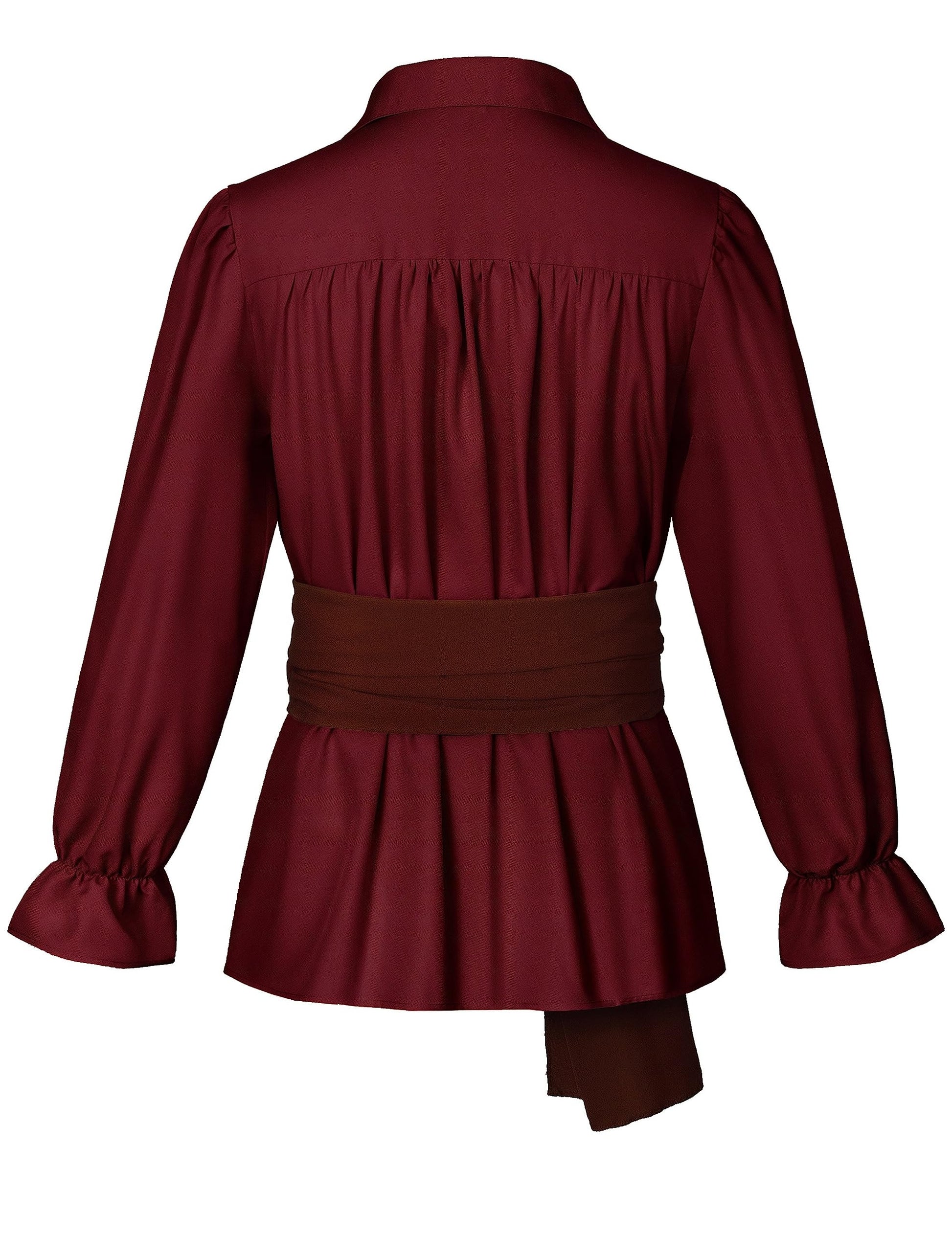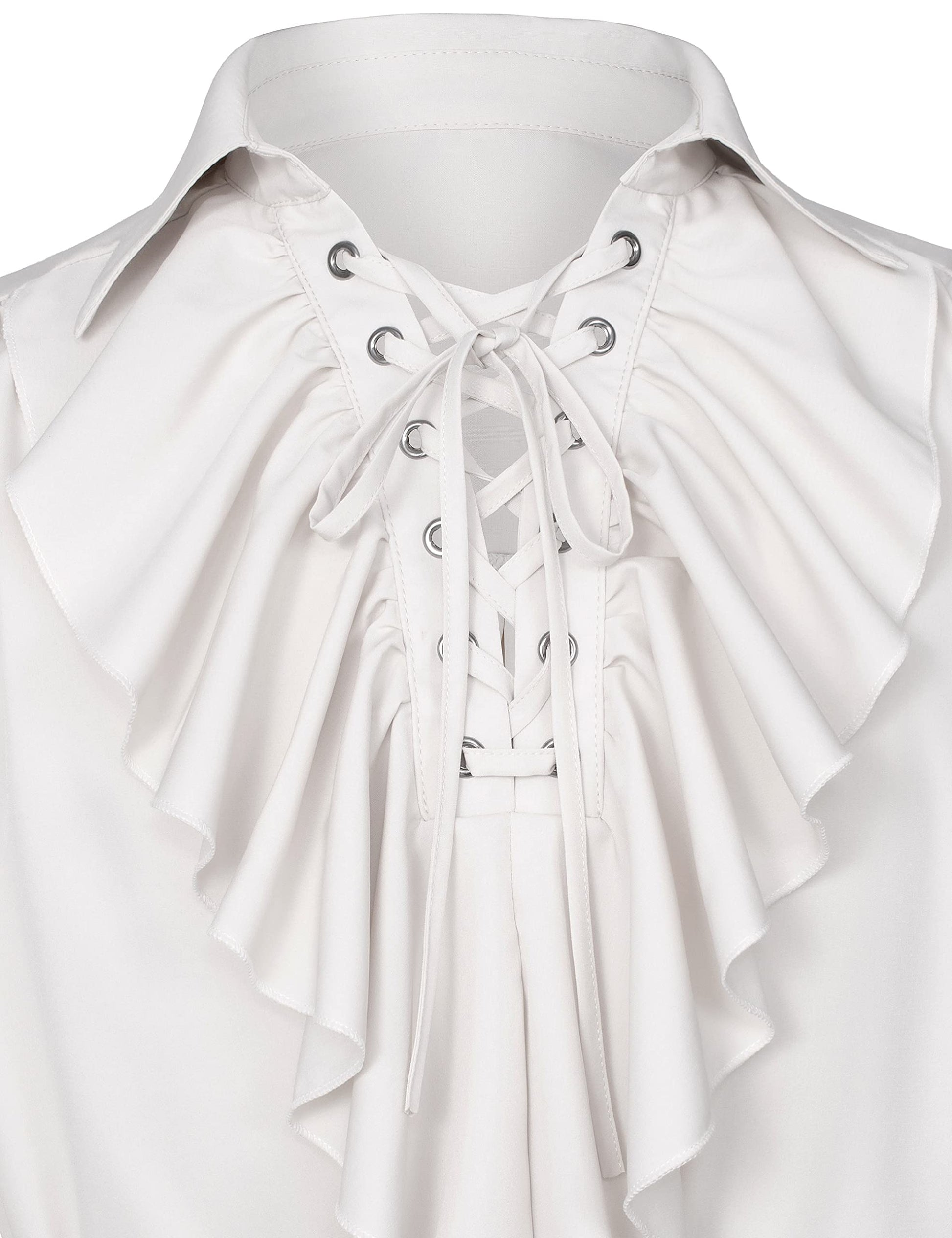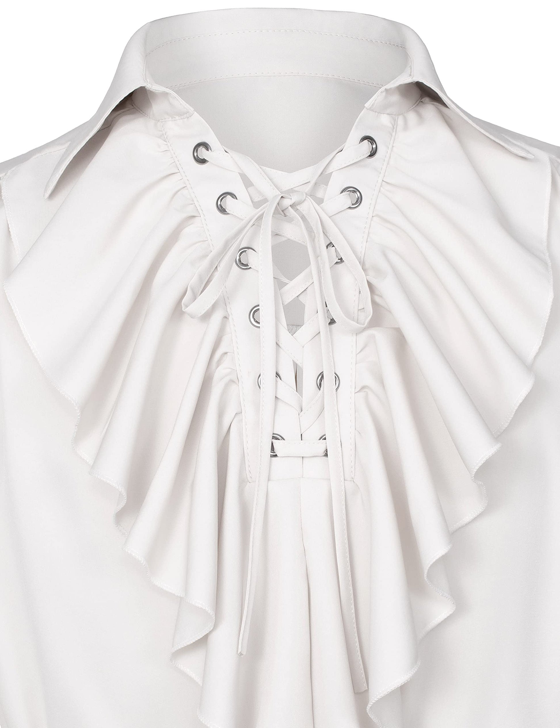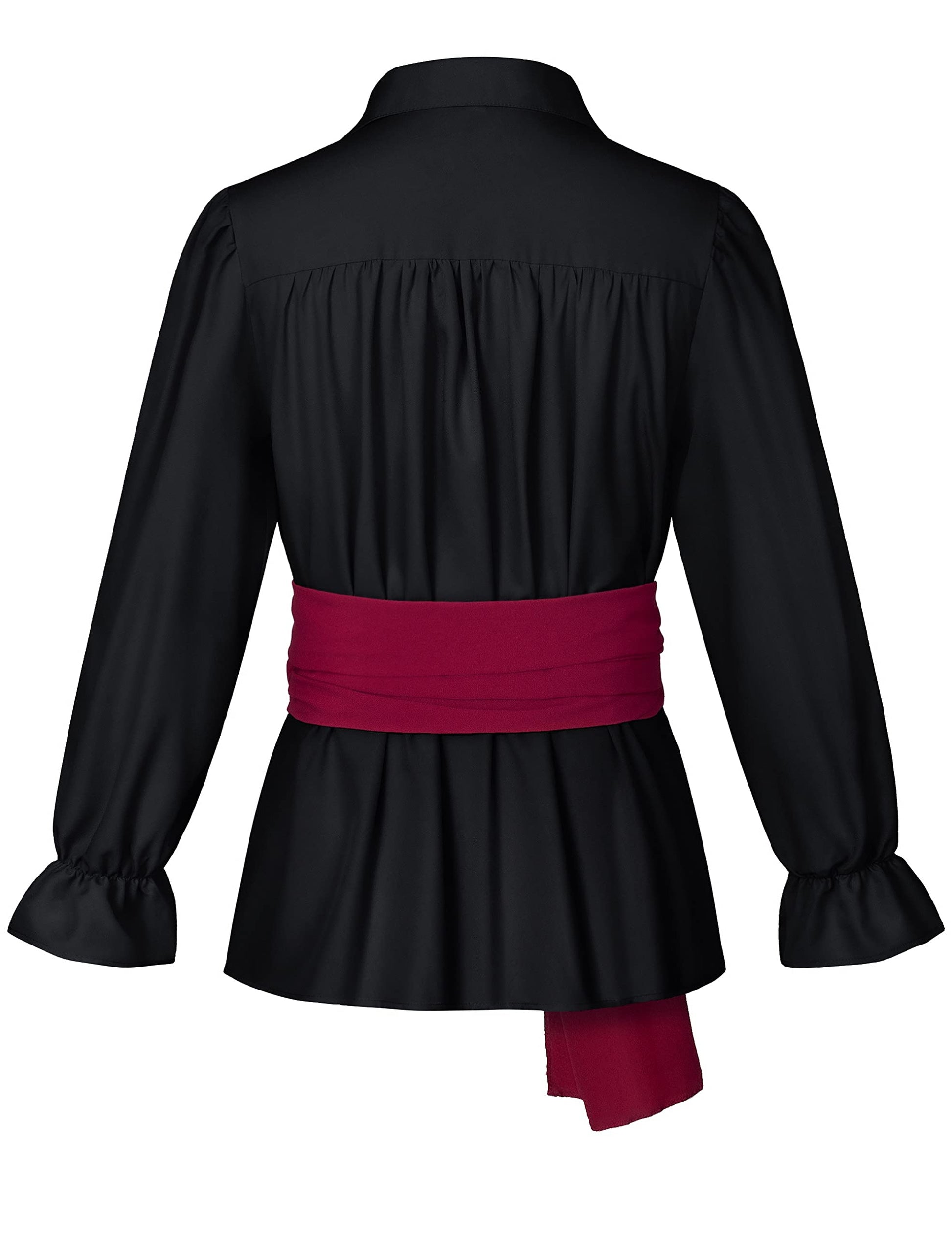 Renaissance men's women's viking pirate lace up colonial shirt medieval victorian vampire steampunk gothic ruffled halloween clothing tops waist belt sash set. Solid color and retro style, cosplay costume shits for men's and women's. Lace-up neckline sleeves with delicate ruffles cuff, Soft and lightweight polyester fabric, keep you cool, dry and moving comfortably. This shirt is suitable for many characters,you can pair this vintage dress shirt with vest and suit jacket for a elegant yet sophisticate look; Or pair the renaissance shirt with steampunk jacket for victorian gothic costume; Pair it with a skinny jeans, and tall boots for a captain hook costume.You won't regret it. Suitable for many occasions, wedding, groom, masquerade, pirate cosplay show, theatrical show, vampire, 18 cent period, Victorian, gothic, for a captain hook costume, medieval, elizabethan, halloween party, colonial day, renaissance fair, concert, festival, graduation season school party, stage peformence, etc. Size Information: Size S:Length 29.9"----Shoulder 16.9"---- Bust 47.2"----Sleeve Length 25.6" Size M:Length 30.7"----Shoulder 17.7"---- Bust 49.6"----Sleeve Length 26.0" Size L:Length 31.5"----Shoulder 18.9"---- Bust 54.3"----Sleeve Length 28.0" Size XL:Length 31.9"----Shoulder 19.7"---- Bust 56.7"----Sleeve Length 29.1" Size 2XL:Length 32.3"----Shoulder 20.5"---- Bust 59.8"----Sleeve Length 30.7"