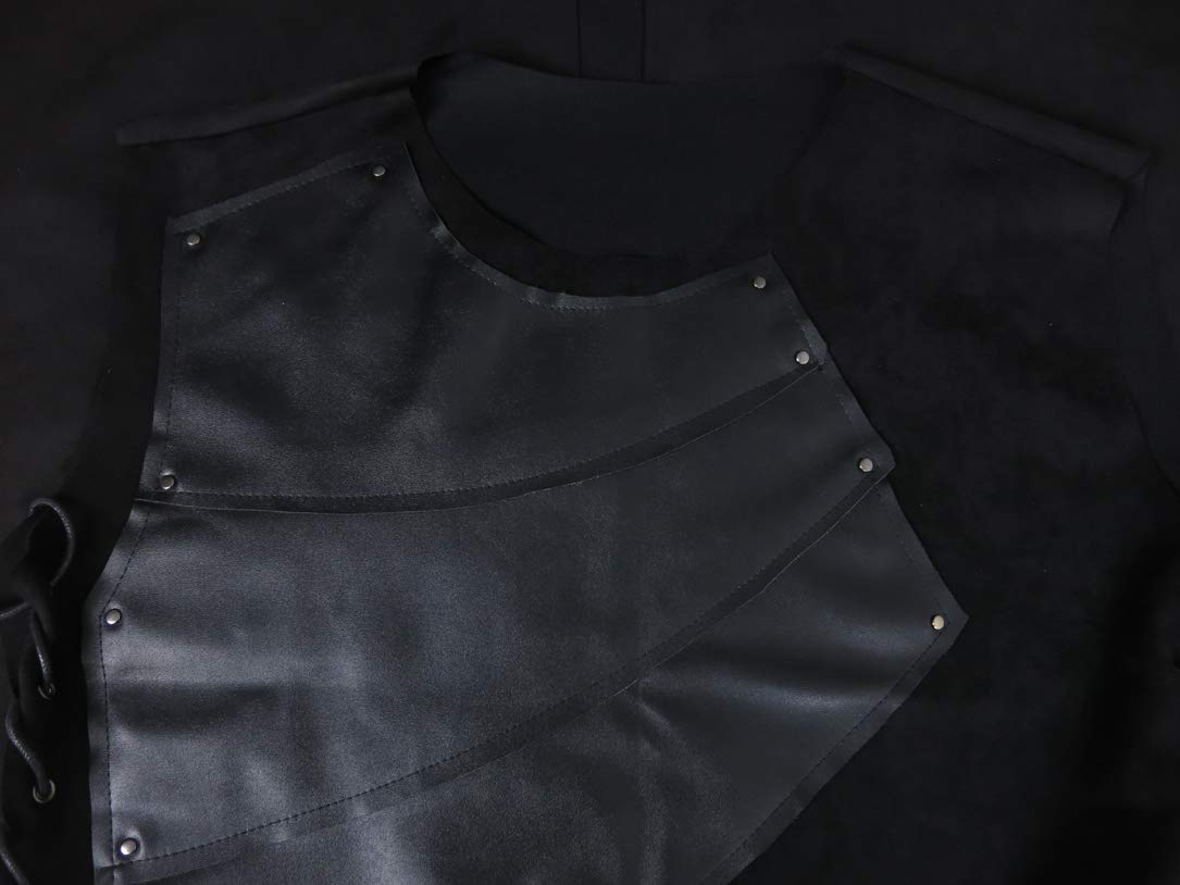 - The piece of leather fabric on vest is soft and thin,It looks armor but can't resistance to attack.And the bottom half of vest is four separated pieces,not together like the kilt.