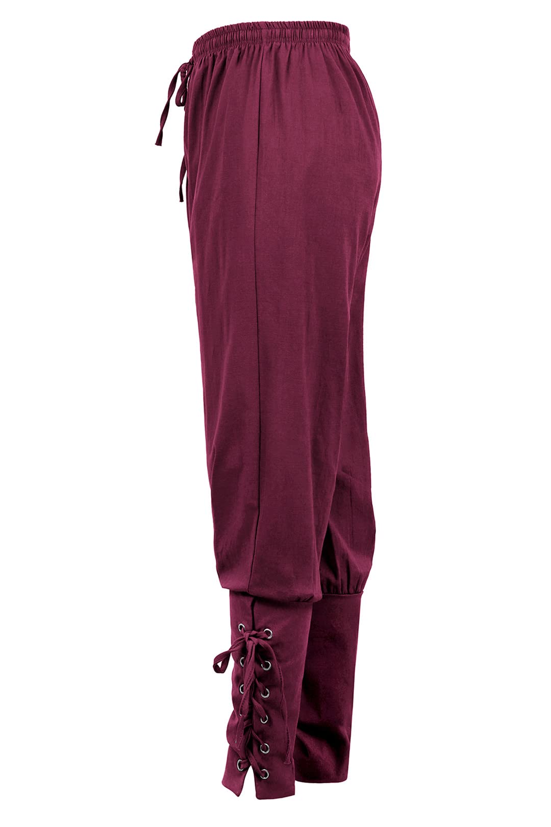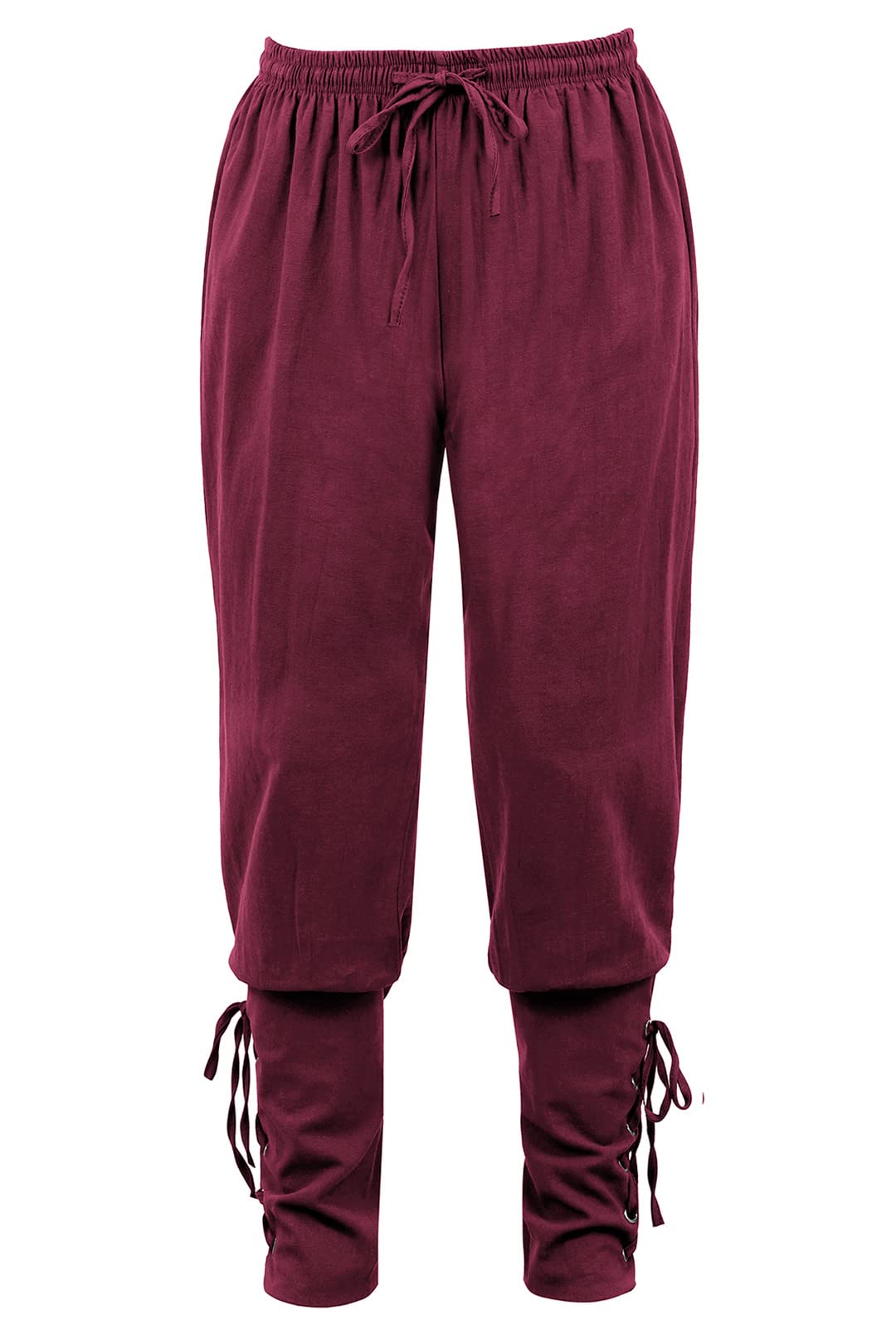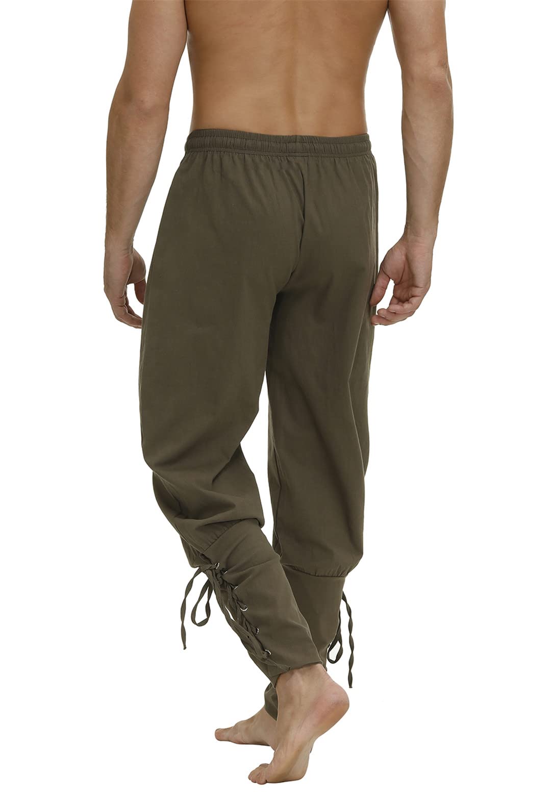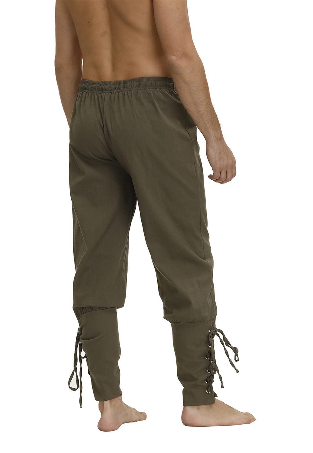 - Renaissance pants pirate costume for men,elastic waistband, drawstring closure,ankle banded pants,draw-strings at the waist for easy fit,lace up lower leg parts,pants have adjustable lace-up cuffs at calf for easy sizing.