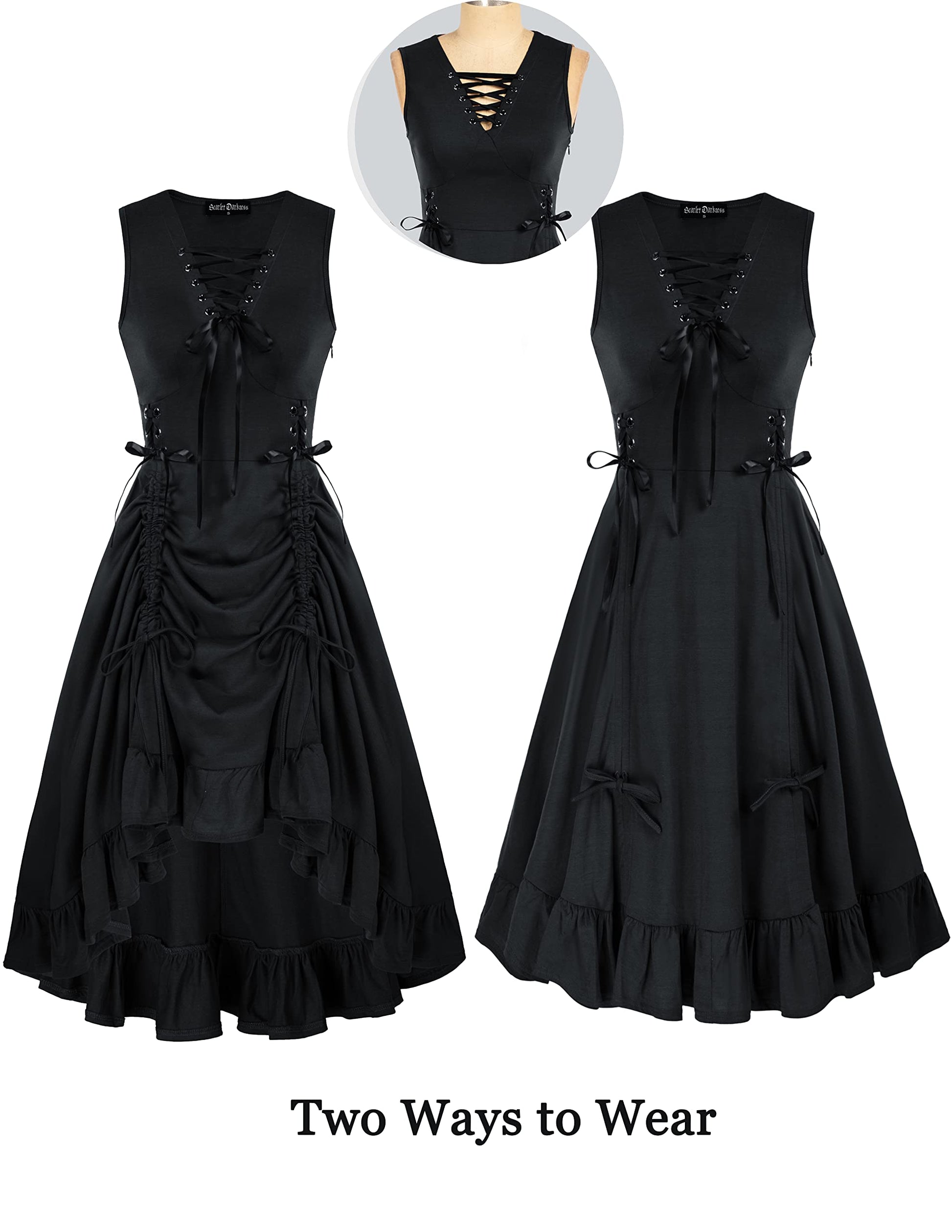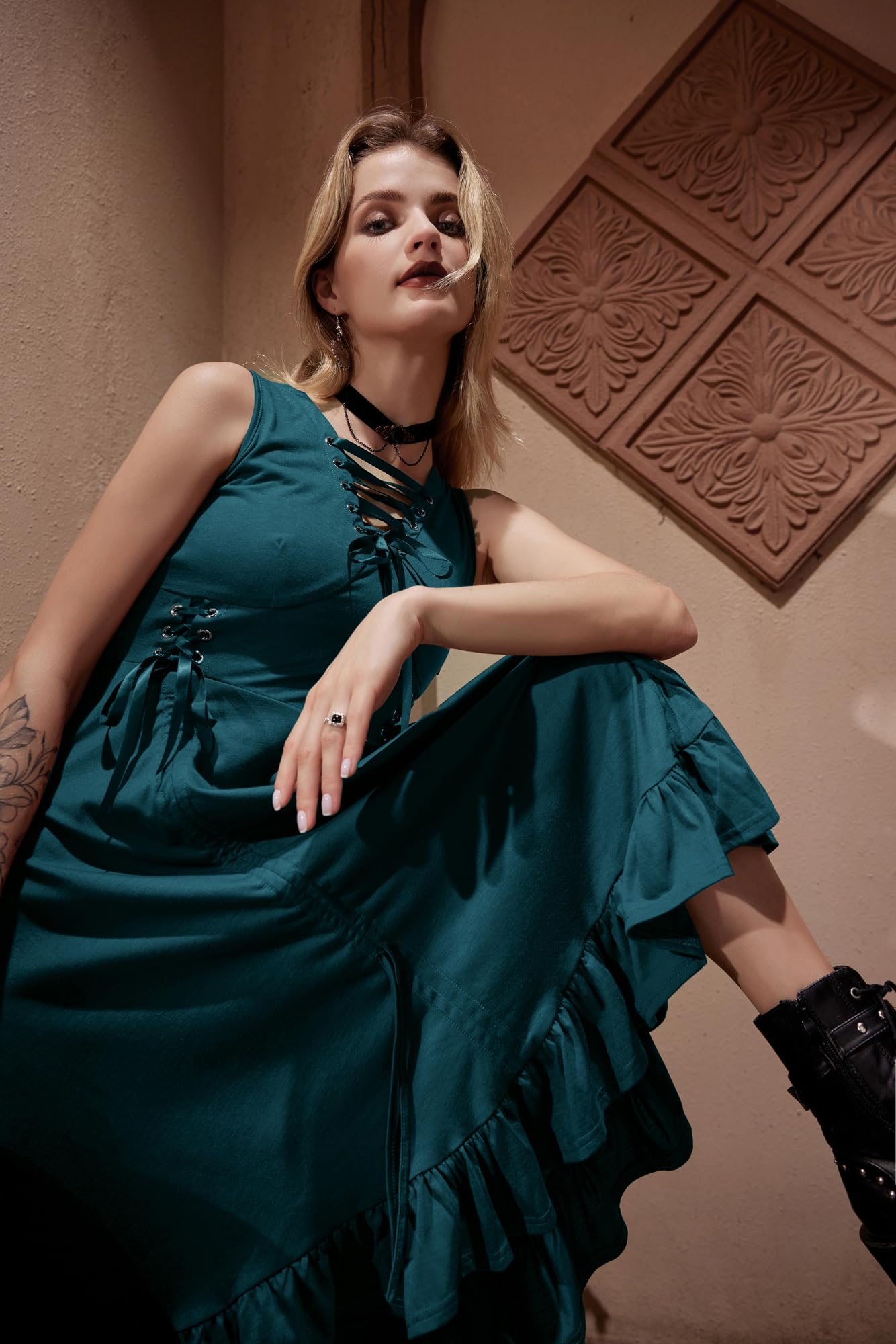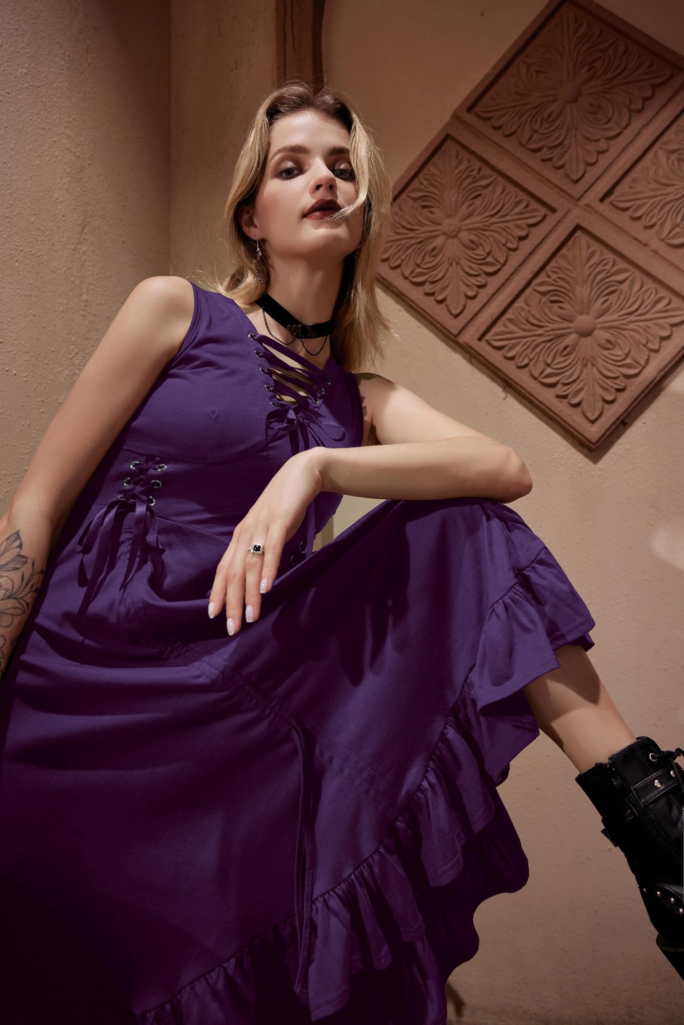 Scarlet Darkness Renaissance Faire Costume Women Lace Up Ruffled Sleeveless High Low Dress Pirate Costume