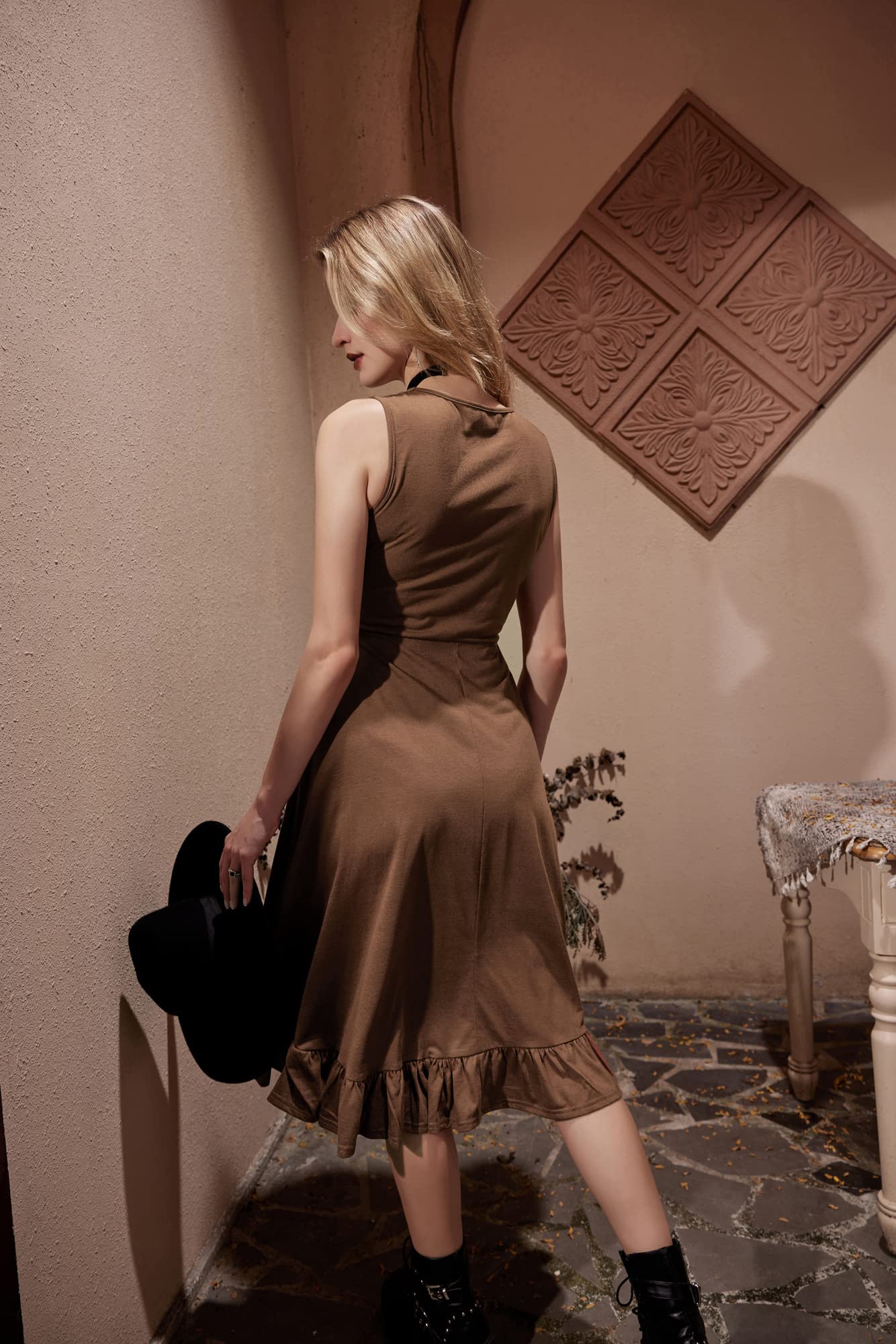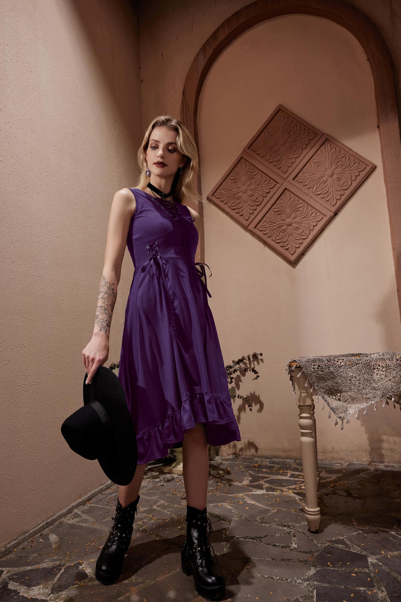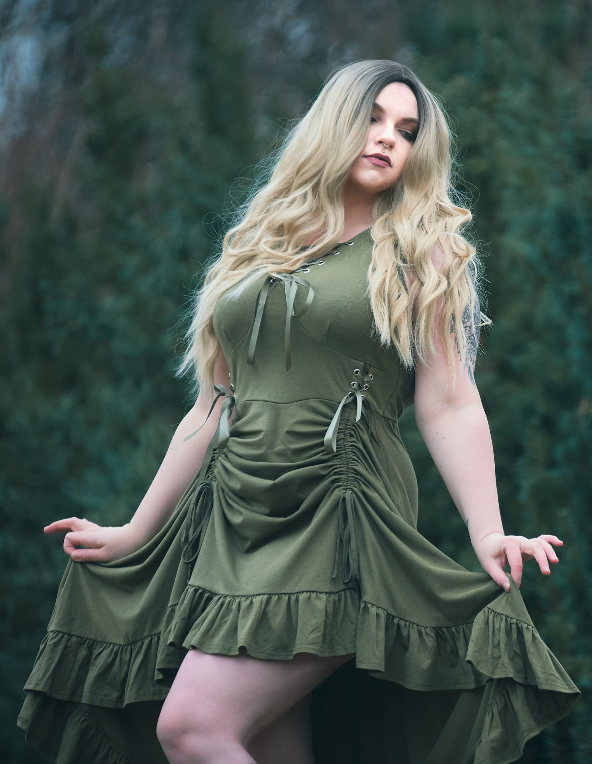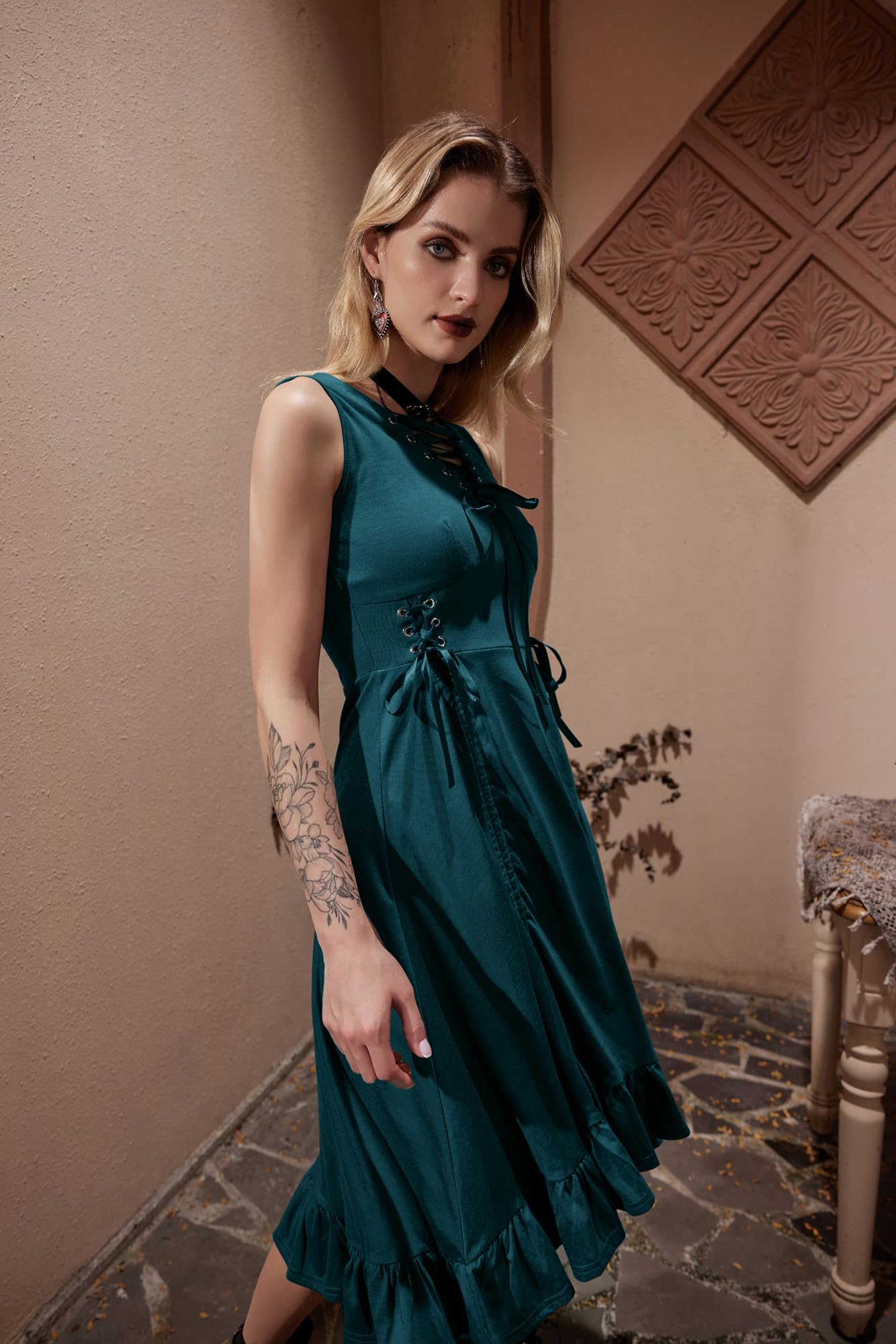 Scarlet Darkness Renaissance Faire Costume Women Lace Up Ruffled Sleeveless High Low Dress Pirate Costume