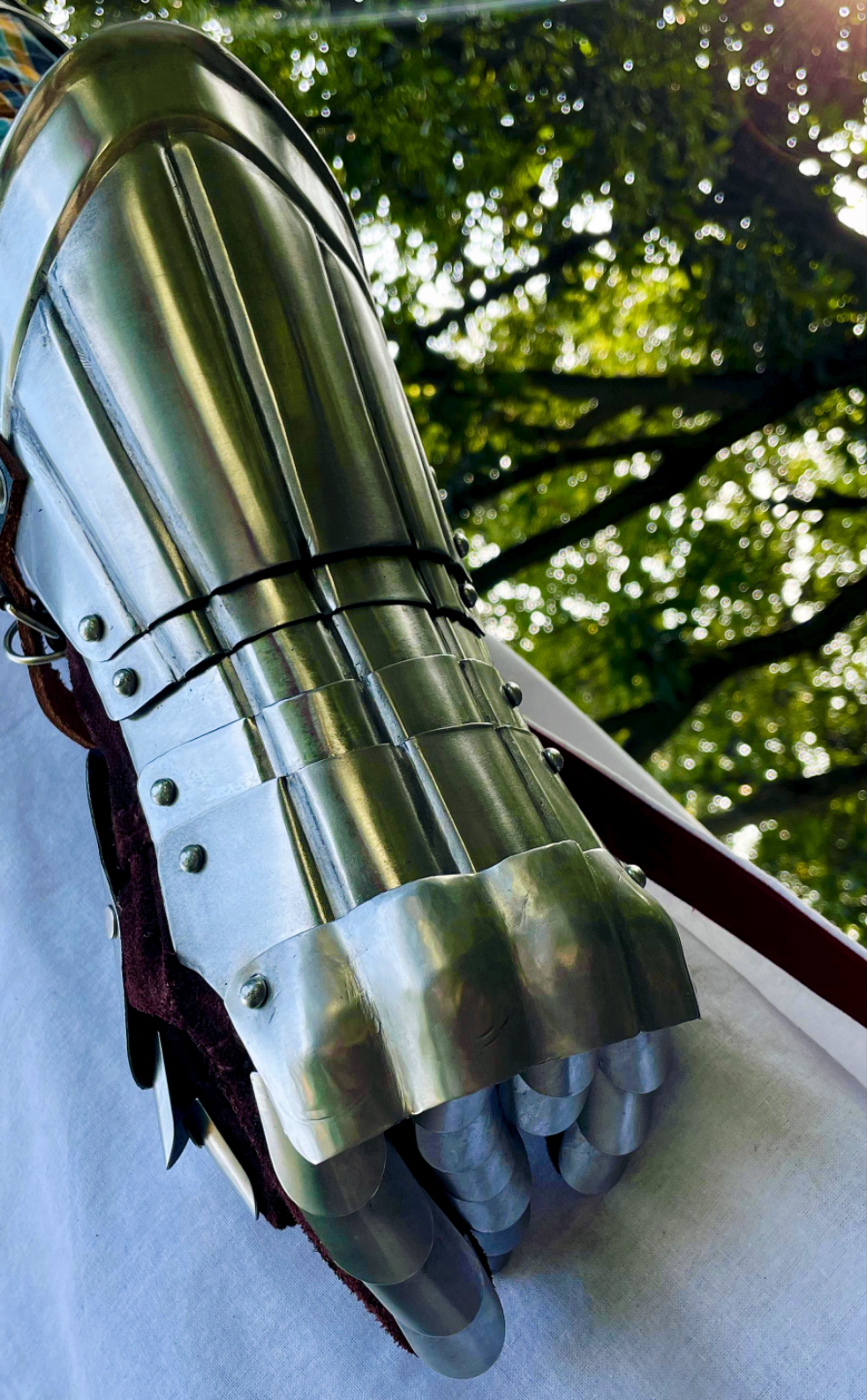 🧤 Gauntlets – Articulated steel gloves, handcrafted for comfort, durability, and full finger movement.