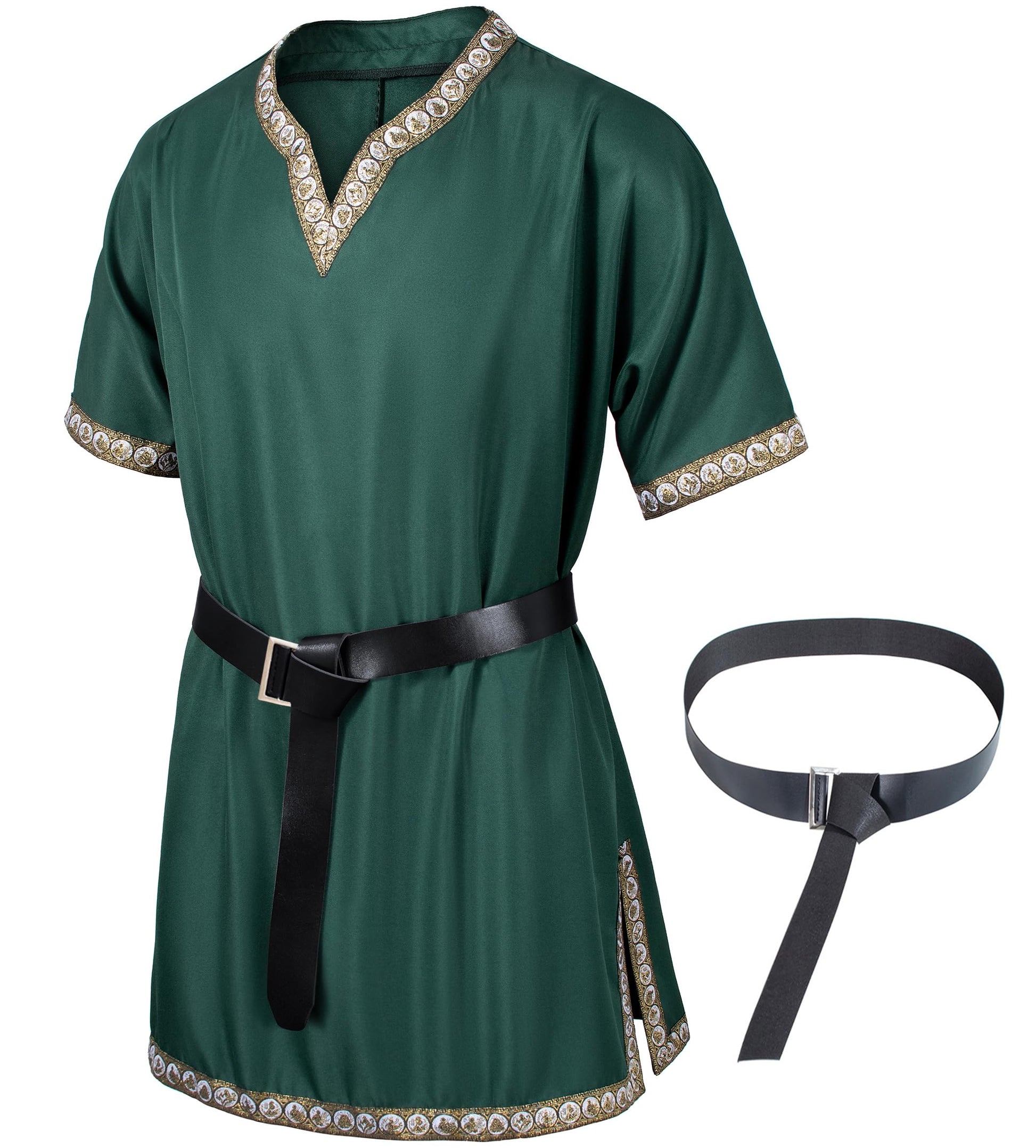 TOGROP Mens Medieval Costume Viking Tunic Knight Warrior Renaissance Shirts with Belt