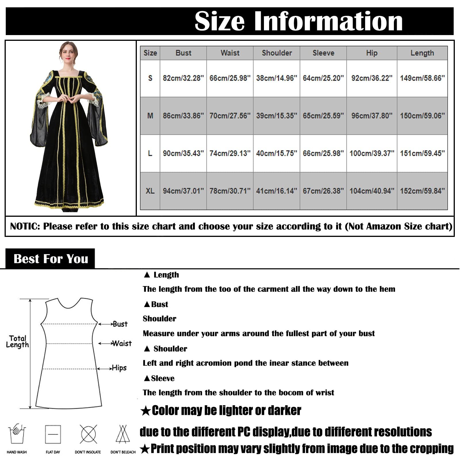 - Renaissance Costume Features: Medieval dress has elastic neckline, worn off the shoulder to show more beautiful neck, it won't be fall down. Stretch around the chest and waist, also availbale for plus size ladies.