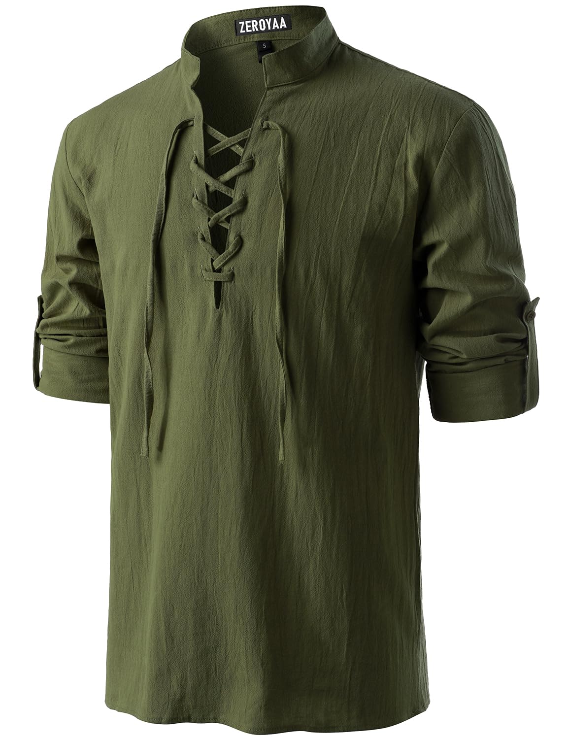 ZEROYAA Men's Medieval Vintage Long Sleeve Lace Up Shirt Renaissance Costume for Halloween Viking Pirate Cosplay